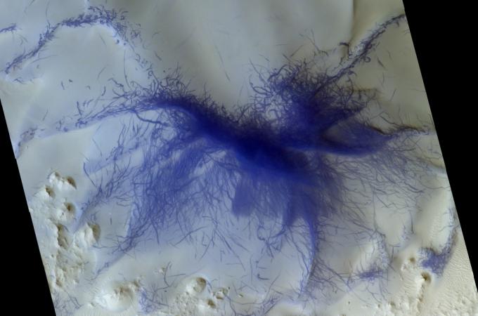 Evropská sonda TGO vyfotila na Marsu „chlupatého modrého pavouka“