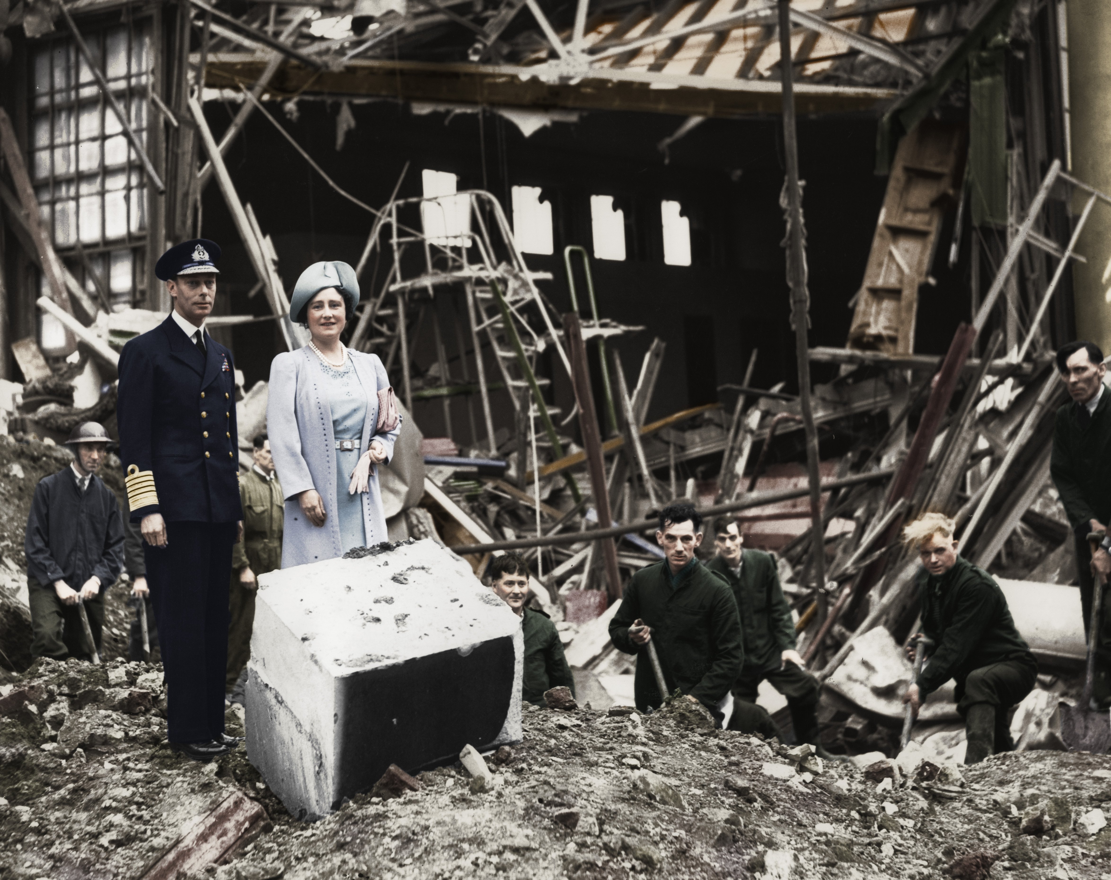 Královský pár často navštěvoval místa poškozená bombardováním, tentokrát si však vzali Němci na mušku jejich palác.