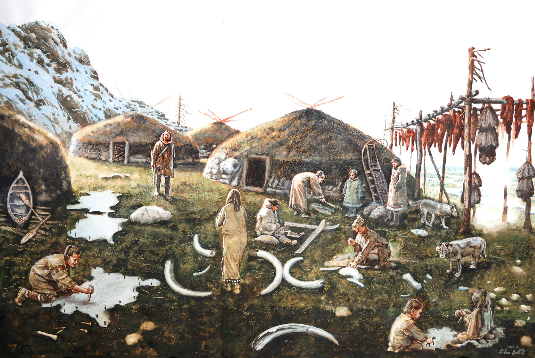 Lovci mamutů se vyhýbali studeným jeskyním – naopak si stavěli teplé domy, kde mohli chodit polonazí. (ilustrace: Libor Balák (Anthropark/Anthropos) - se souhlasem k publikování)