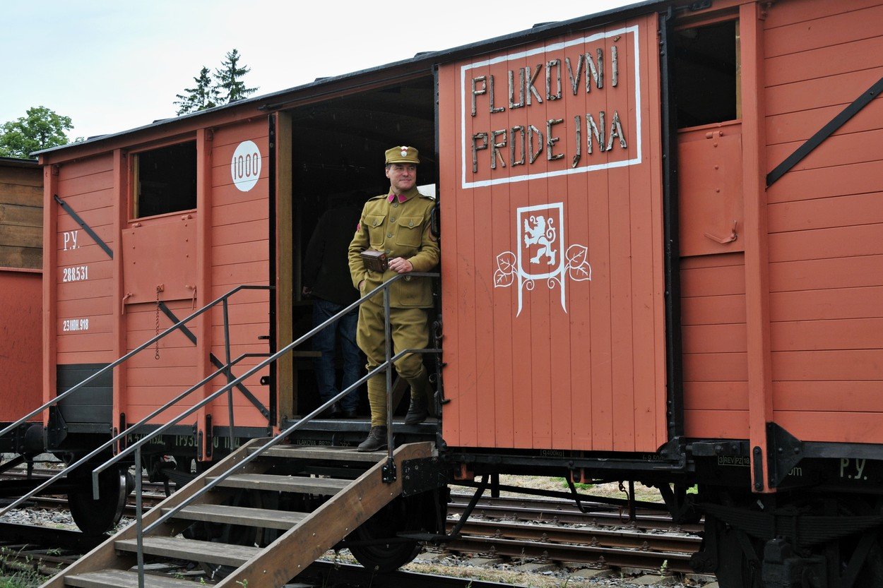Legiovlak během své zastávky v Aši. V příštích dnech lze Legiovlak navštívit v Lanškrouně, Chocni, Čáslavi, Humpolci, Chotěboři, Hlinsku nebo třeba v Poličce.