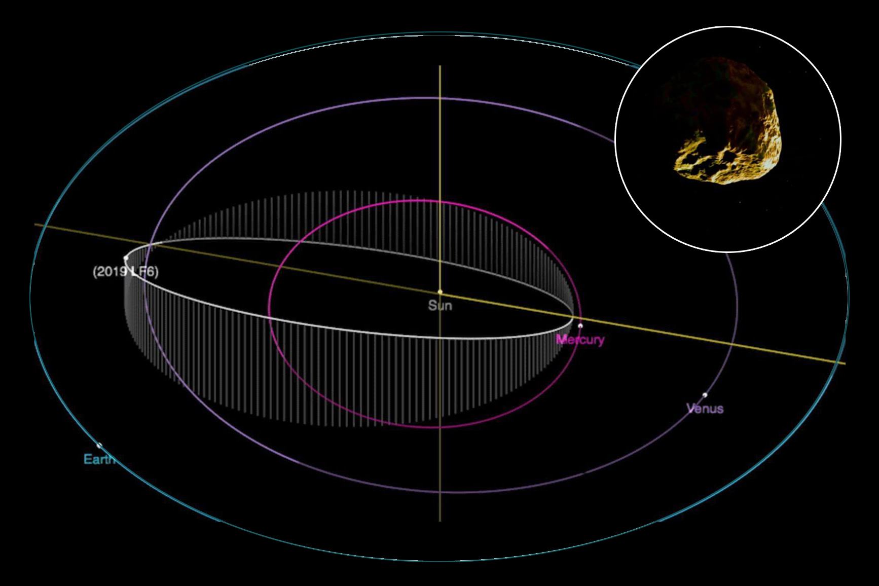 Oběžná dráha asteroidu 2019 LF6 ve Sluneční soustavě.