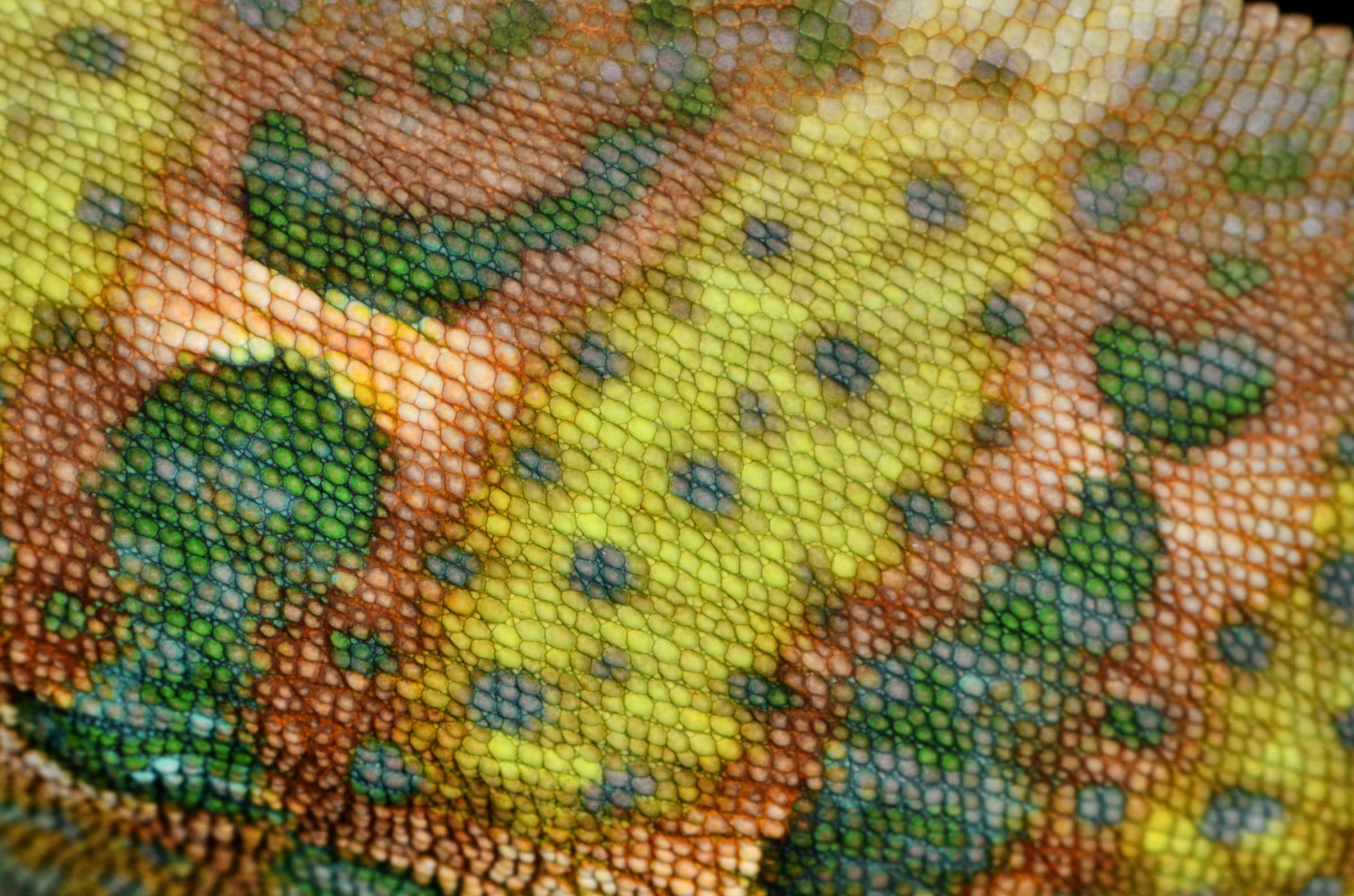 • Kůže chameleonů je jako u všech ještěrů tvořena šupinami. Tyto jsou schopny pozoruhodně měnit barvu.