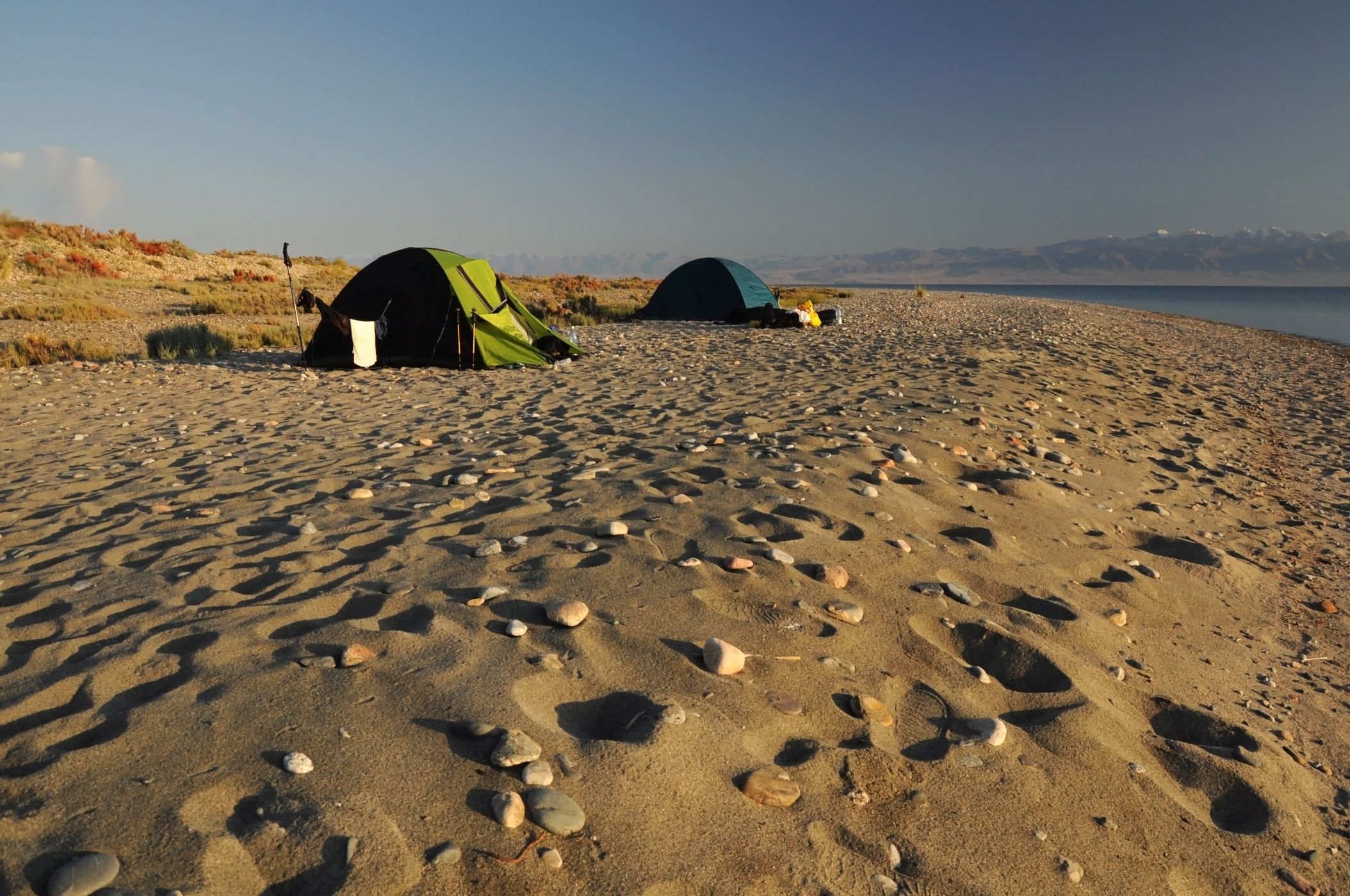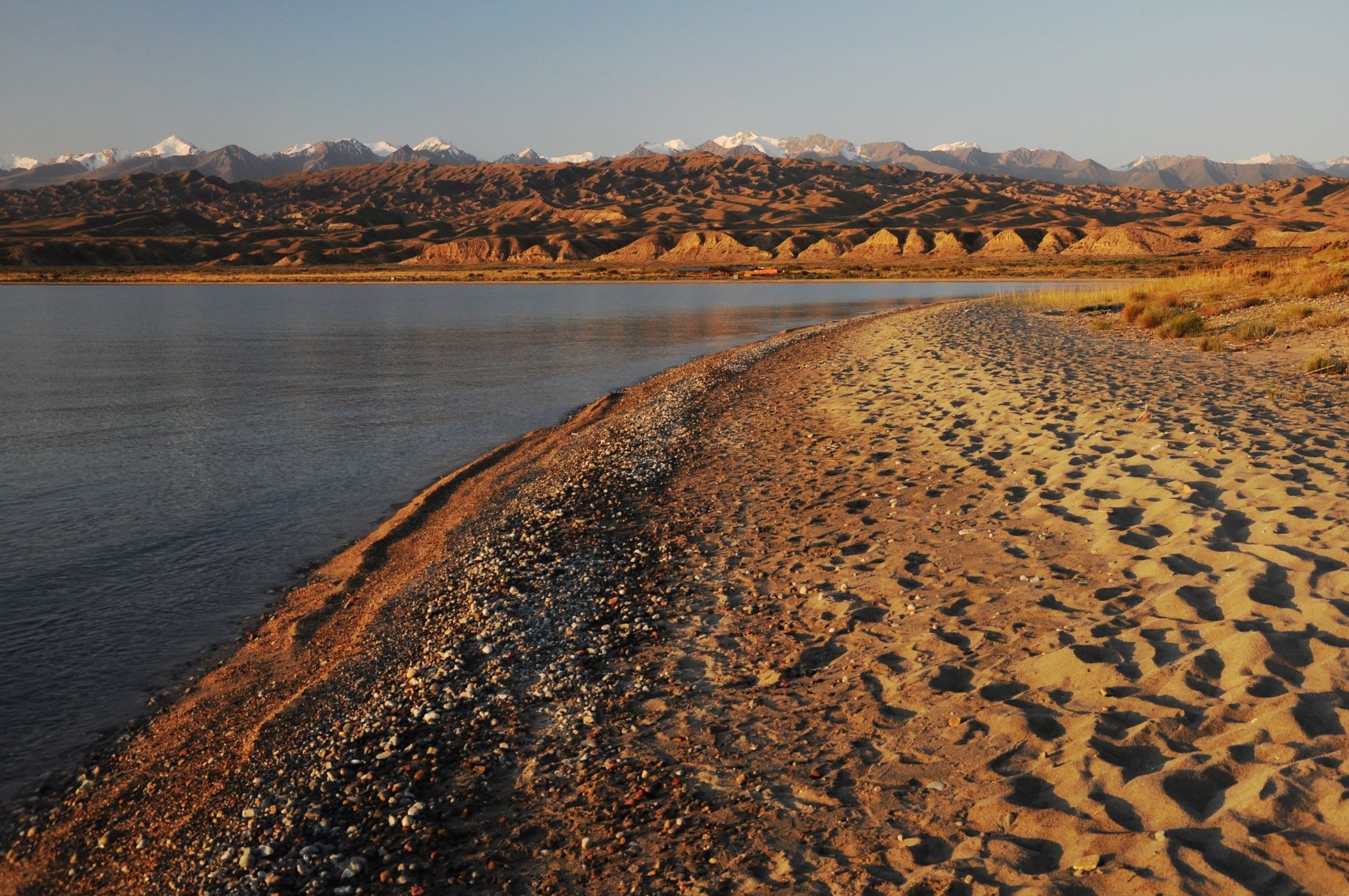Scenerie ospalého jižního břehu jezera Issyk-kul.