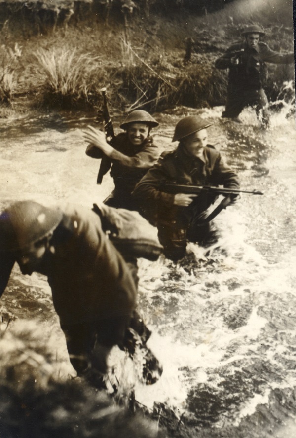 Instruktorský sbor využíval zkušeností britských speciálních jednotek Commandos. Na snímku výcvik střelby pod vedením elitní Skotské gardy
