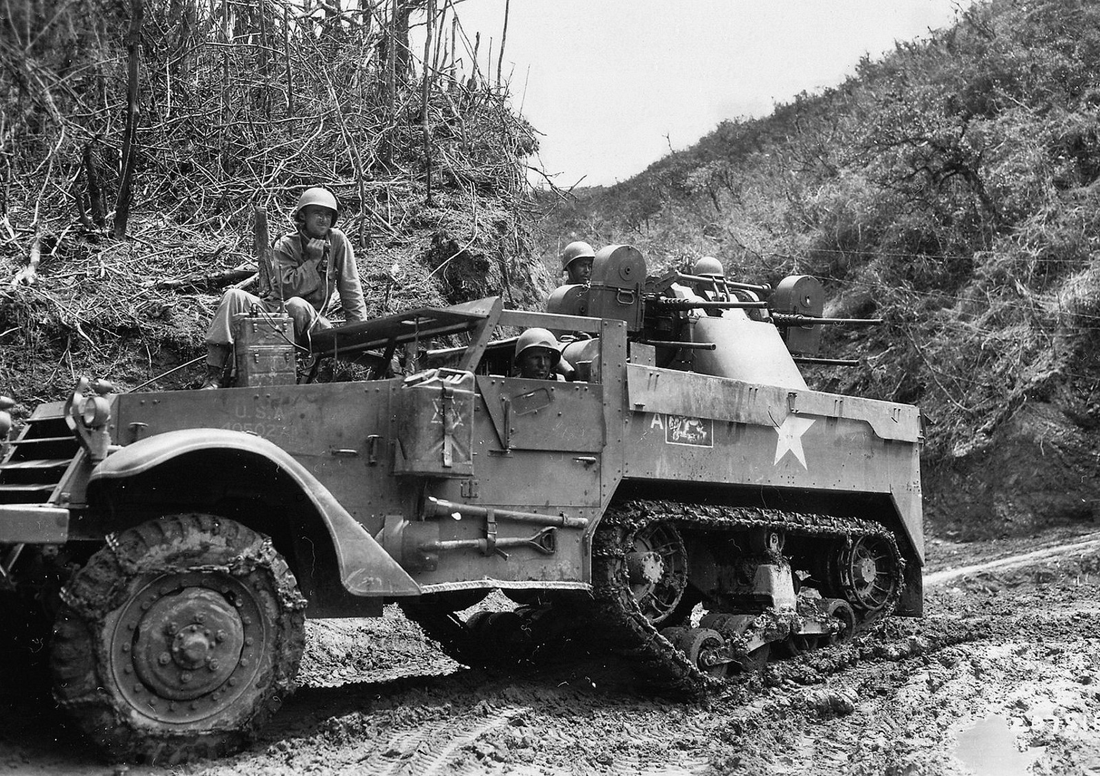 Polopás M16 Multiple Gun Motor Carriage náležící k 32. pěší divizi během bojů na ostrově Luzon