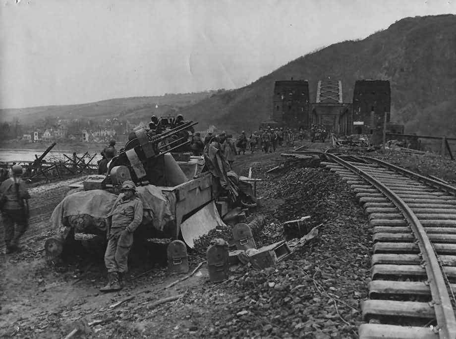 Američtí vojáci s kompletem M45 u remagenského Ludendorffova mostu.