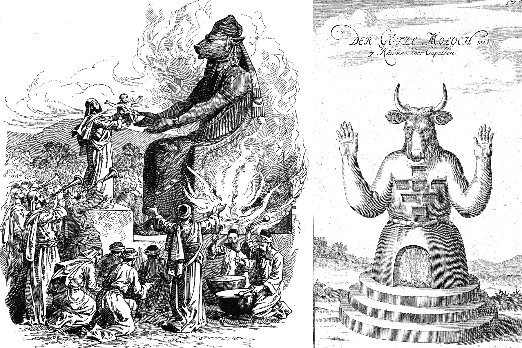 Modla Molocha se roztápěla odspodu a do jejích rozpálených rukou se posléze vkládala dětská oběť. Často bývá zobrazována coby socha s několika komorami, jež se plnily obětinami.