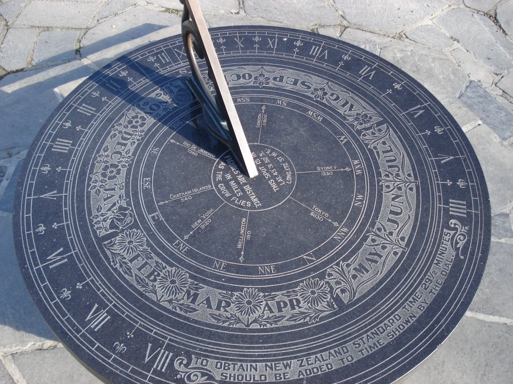 Sluneční hodiny - Poloha stínu na hodinách se mění podle toho, jak Země obíhá kolem Slunce.
