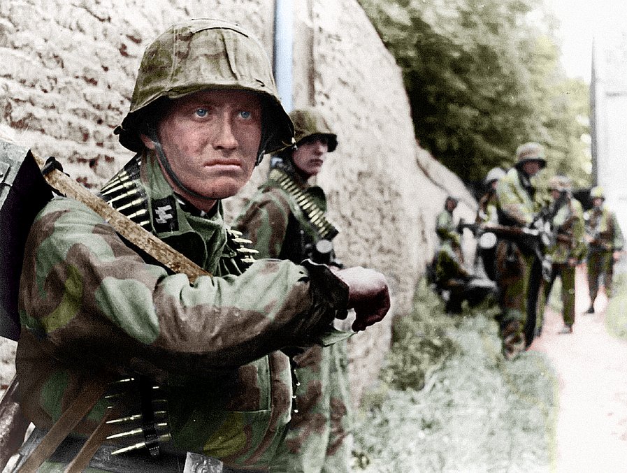Jedním ze symbolů války a marného odporu Němců v Normandii se stal osmnáctiletý SS-Sturmmann Otto Funk, příslušník průzkumné roty pluku pancéřových granátníků 25 z 12. tankové divize SS „Hitlerjugend“. Snímek vzniknul 9. června 1944 poblíž vesnice Rots, přibližně pět kilometrů západně od Caen, o které mladíci pod velením SS-Standartenführera Kurta „Panzera“ Meyera sváděli v následujících týdnech tvrdé boje s Brity a Kanaďany. Ještě v červnu se snímek ocitl na titulní straně Stuttgarter Illustrierte s titulkem „Invaze! Německá protiopatření běží!“ (Kolorovala Katarína Brummerová / kniha Druhá světová v barvě)
