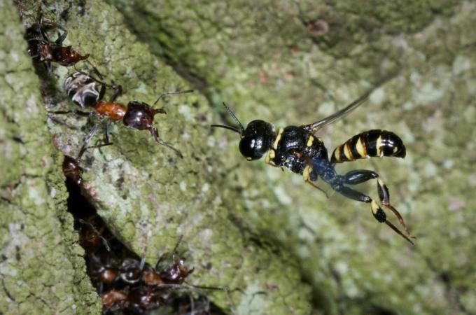Vzdušný útok černo-žlutých lovců: Kutilky atakují mravence lužní