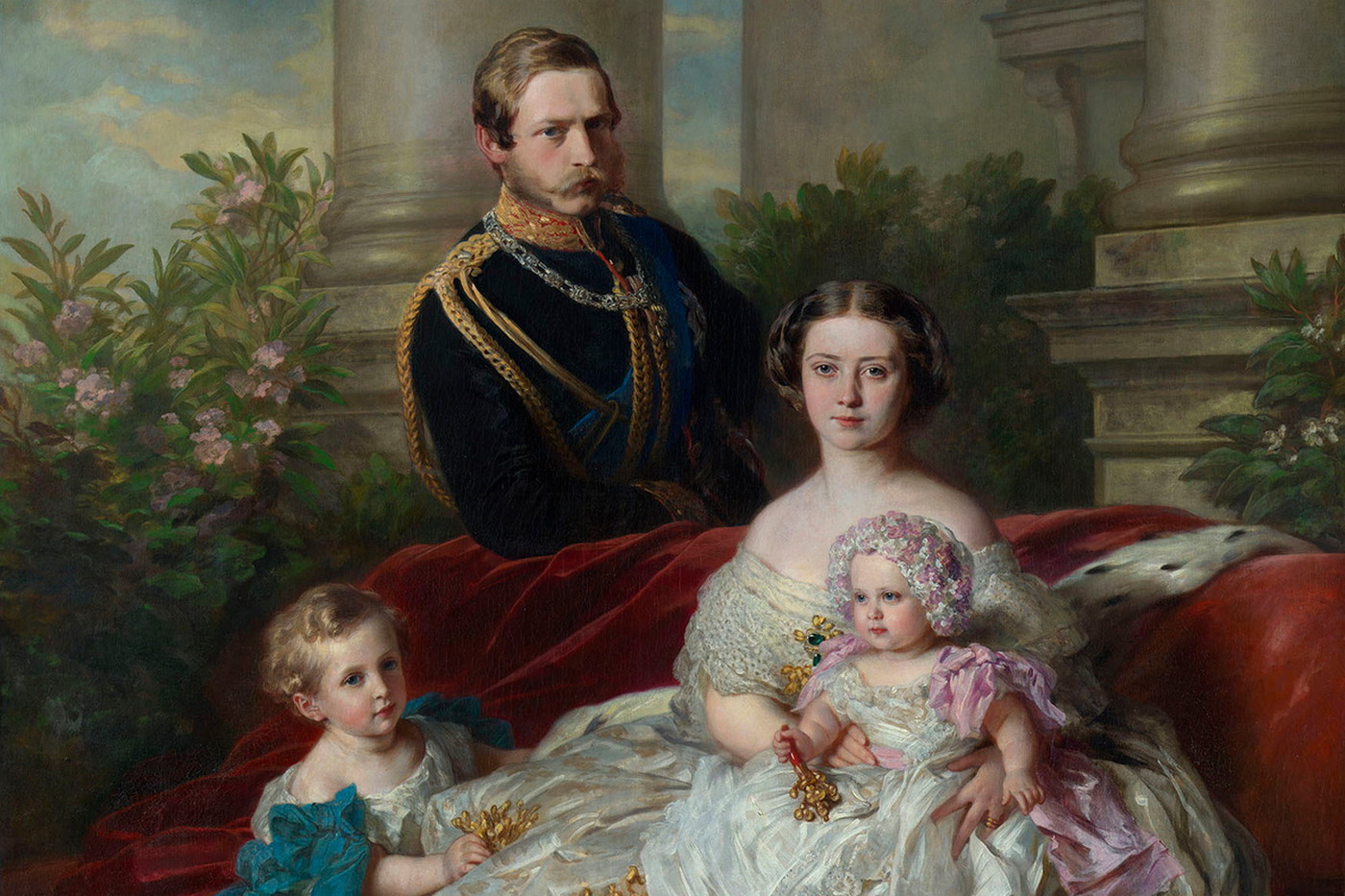 Pruský princ Fridrich s manželkou a dvěma staršími dětmi, princem Vilémem a princeznou Šarlotou. Portrét od Franze Xavera Winterhaltera, 1862. (ilustrace: Wikimedia Commons, PDM 1.0)