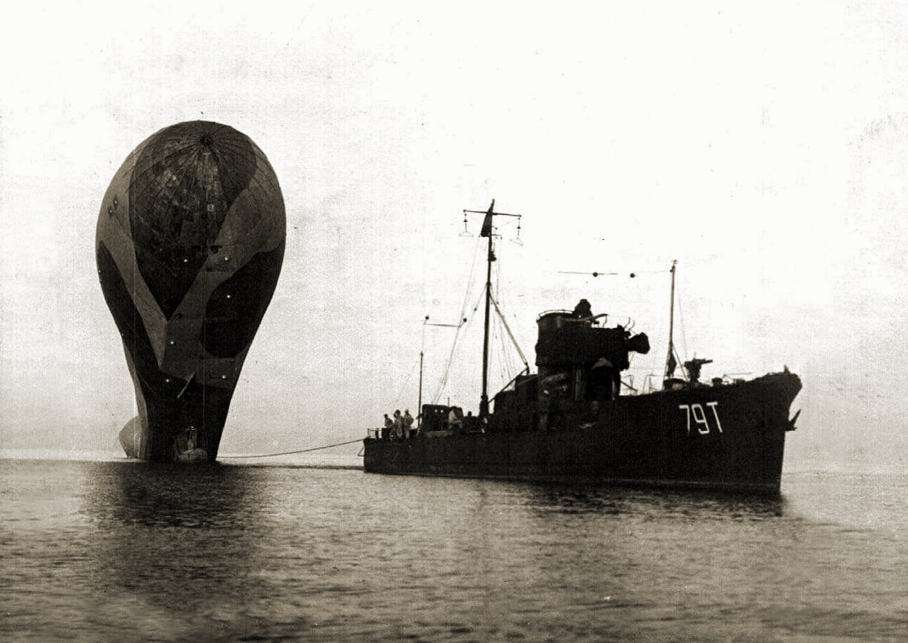 táhne vrak vzducholodě do přístavu v zálivu Veruda