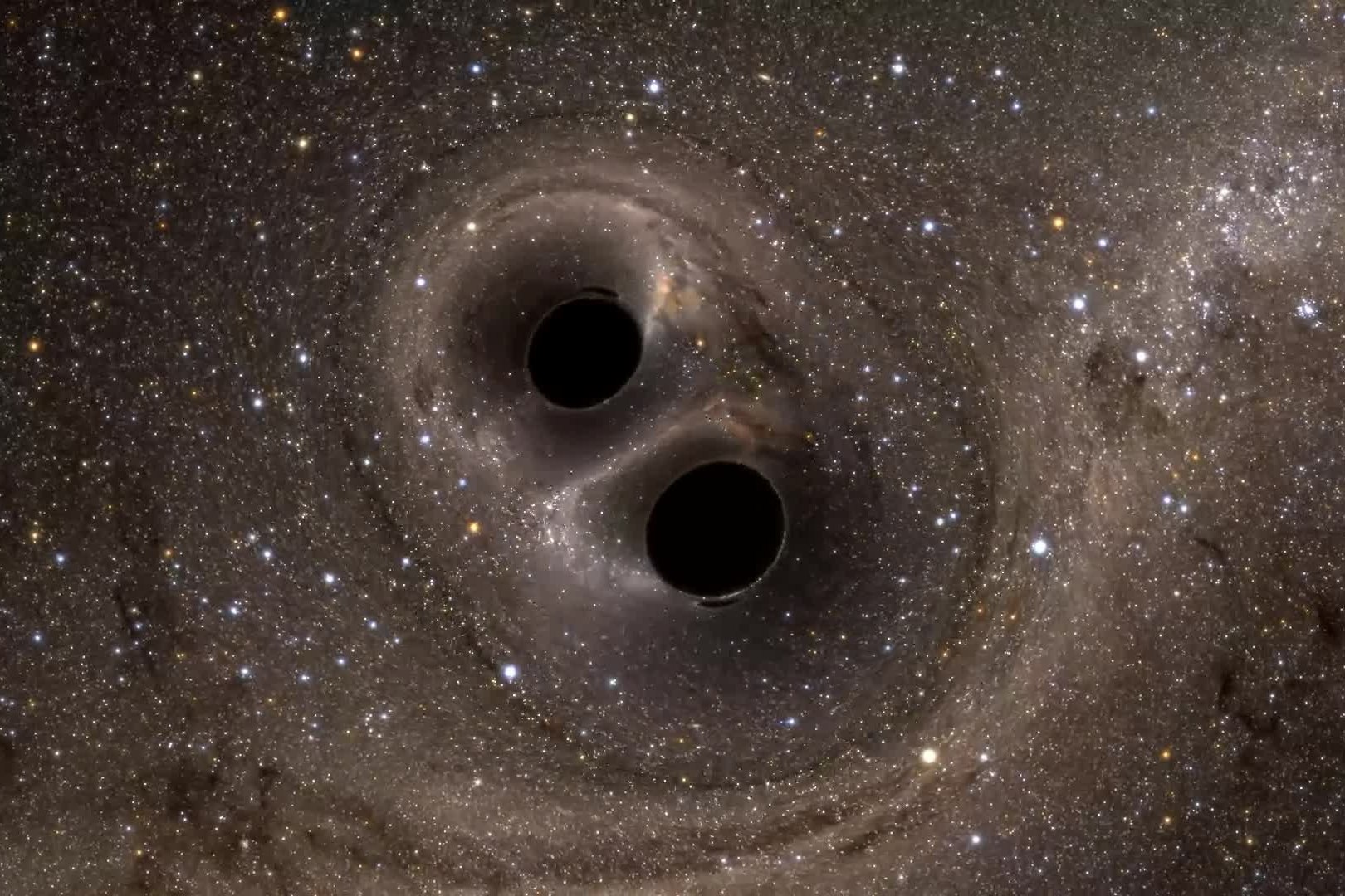 Počítačová simulace střetu dvou černých děr, který vyvolal gravitační vlny pozorované v září 2015. (zdroj: Wikimedia Commons, Simulating eXtreme Spacetimes, CC BY-SA 4.0)