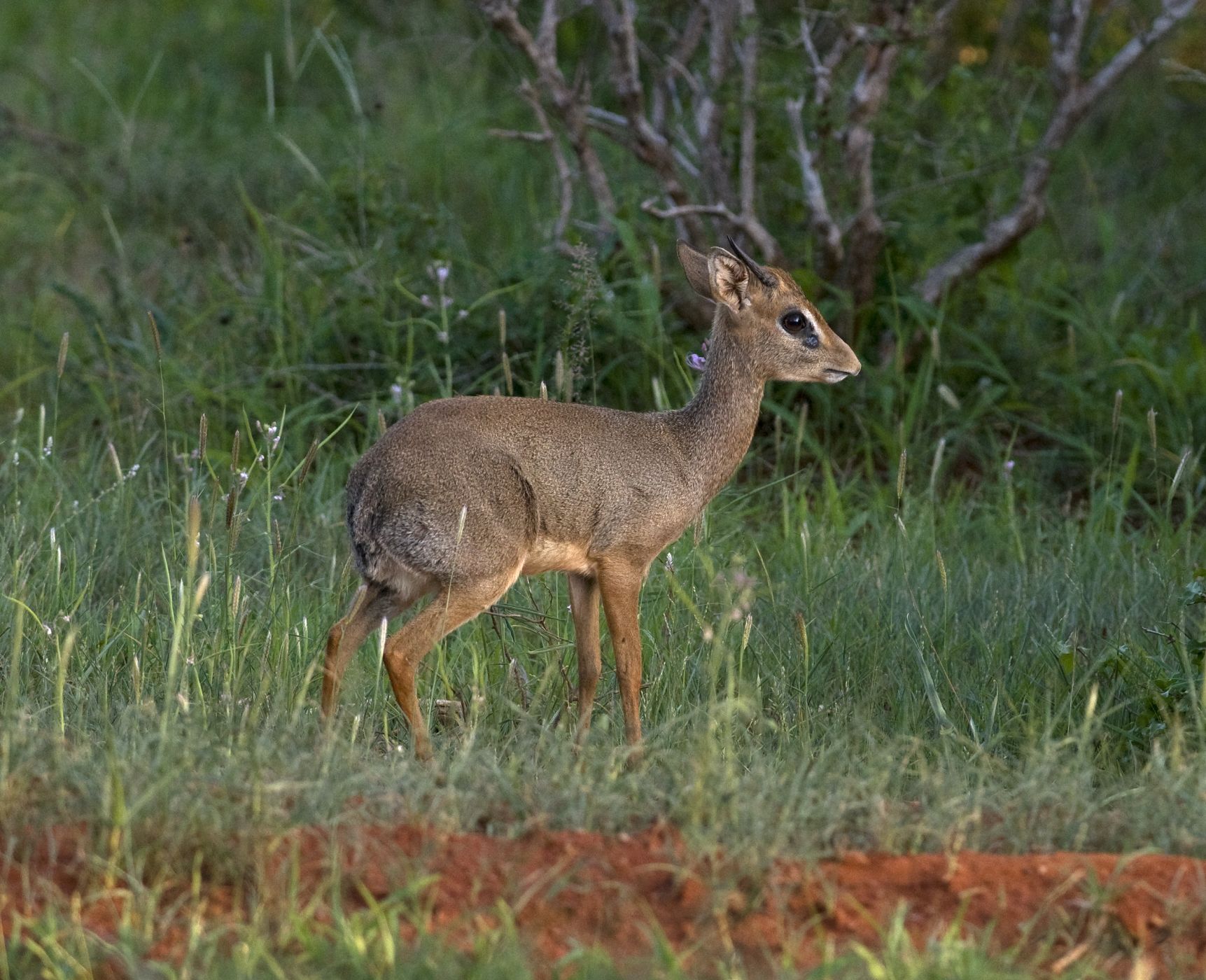 Drobná antilopa dikdik Kirkův váží jen 3–6 kg a dosahuje délky okolo 60 cm.