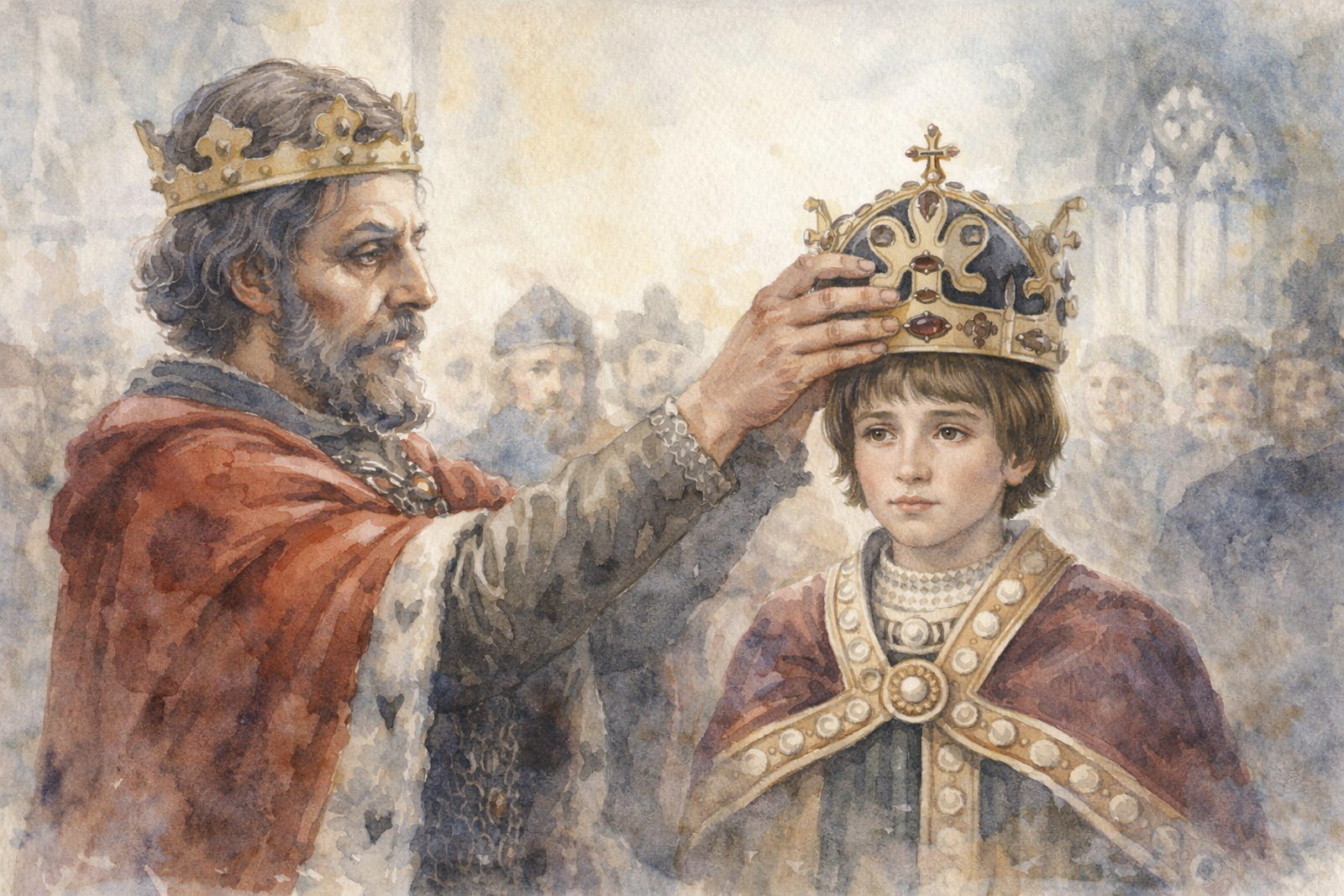 Sněm v roce 1216 měl jasný účel zvolit za krále jedenáctiletého hocha Václava, který měl předem skrze otce a strýce vyjednanou pozici. Samotná korunovace se uskutečnila až v roce 1228, kdy byl Václav korunován tzv. „mladším králem“. Vlády se plně ujal až po smrti svého otce v roce 1230. (ilustrace: ChatGPT, PDM 1.0)