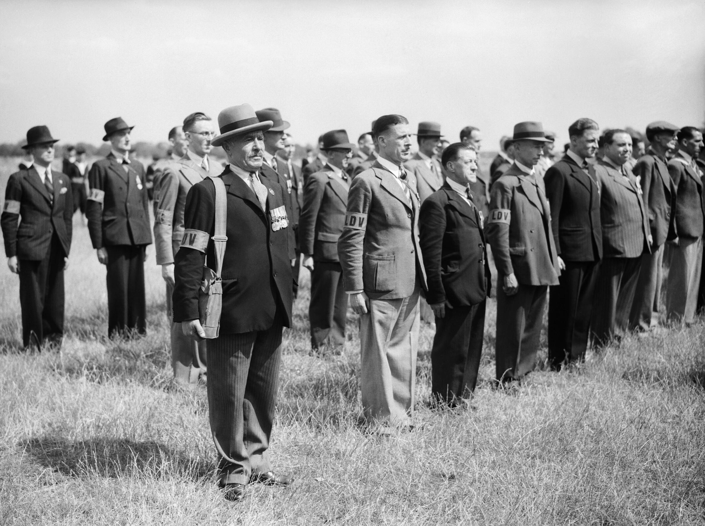 Příslušníci Local Defence Volunteers - konkrétně tito muži bojovali proti Němcům už v Belgii za Velké války
