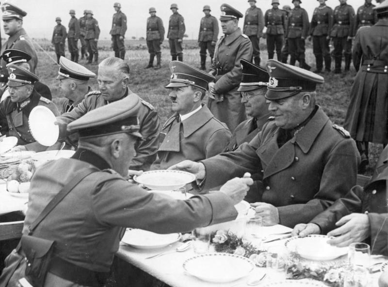 Hitlerova návštěva v Sudetech 3. 10. 1938 – Konrád Henlein vpravo vedle Adolfa Hitlera, napravo od Henleina pak tehdejší vojenský velitel Sudet generál Keitel.