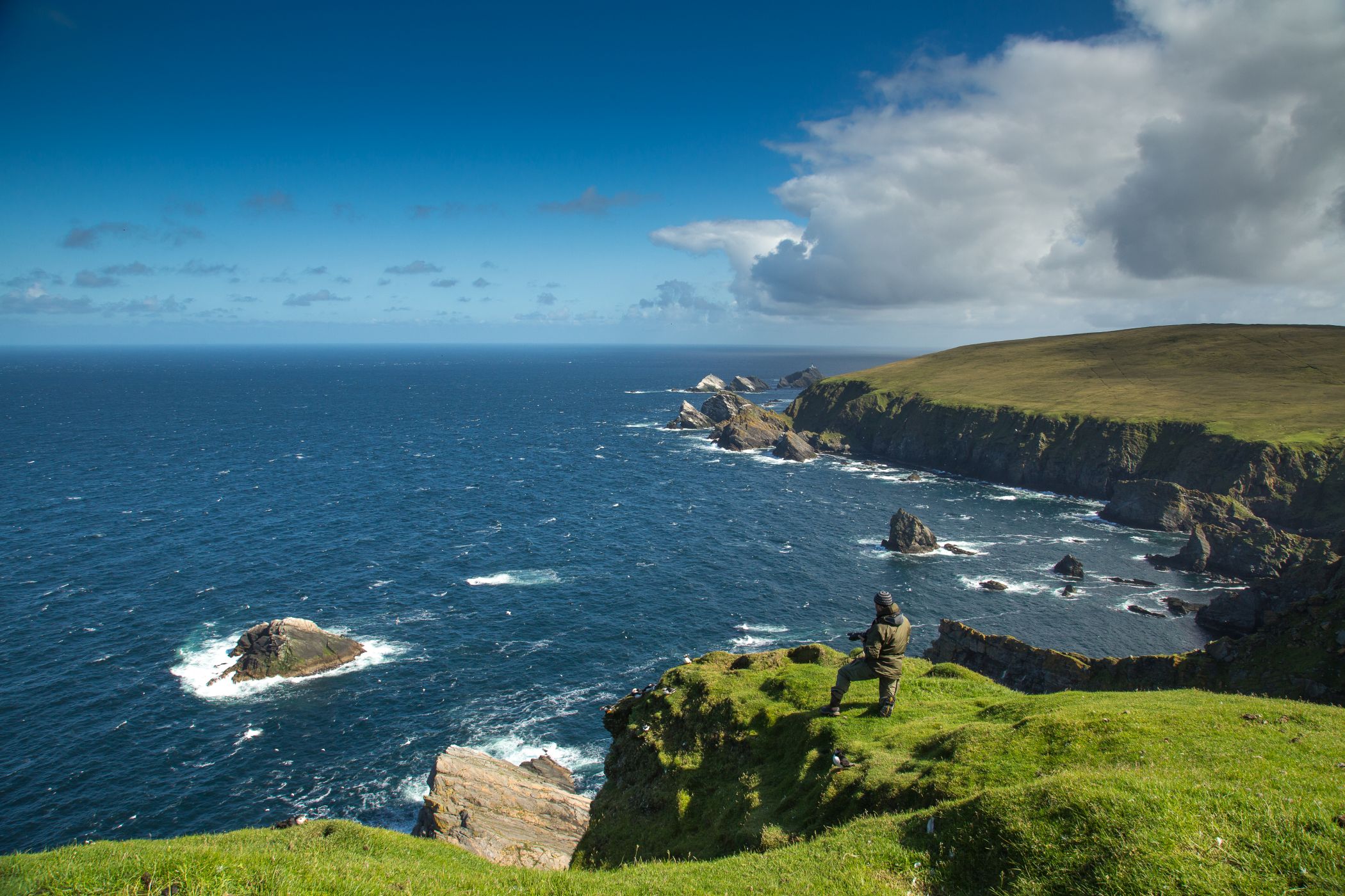Shetlandy jsou zajímavé nejen díky své fauně a flóře. Návštěvníky okouzlí také nádherné pobřežní scenérie, i když modrá obloha není pro shetlandské počasí zrovna typická.