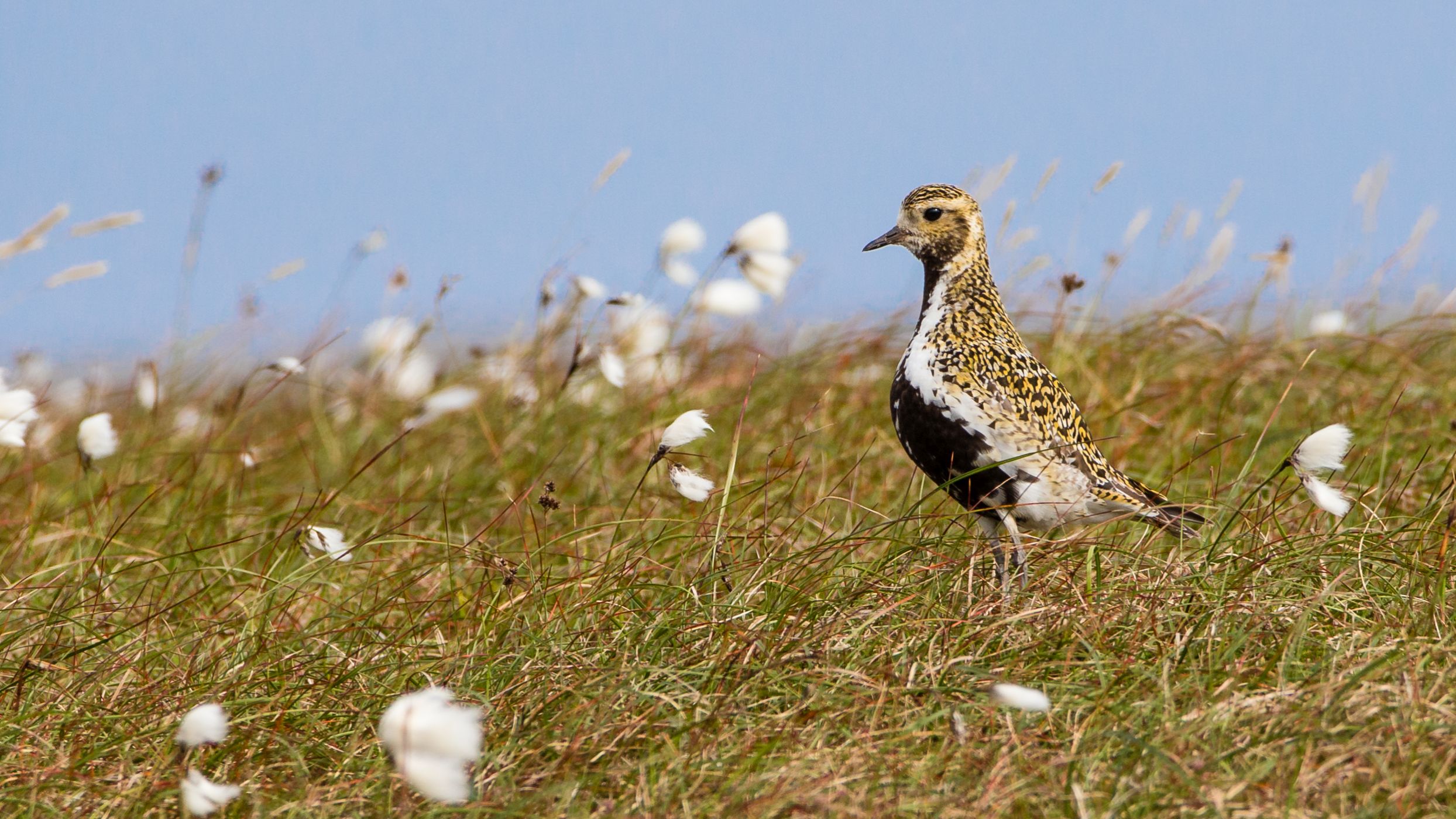 Pohled na kulíky zlaté(Pluvialis apricaria) patří k typickým obrazům letních Shetland.