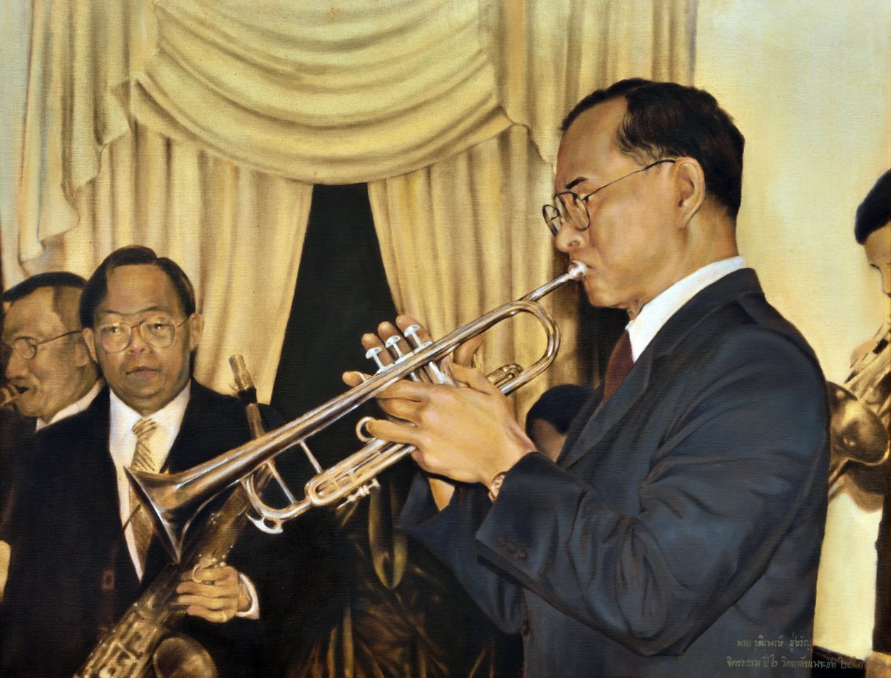 Ráma IX. jako jazzový nadšenec a hudební skladatel zkomponoval thajskou národní hymnu.