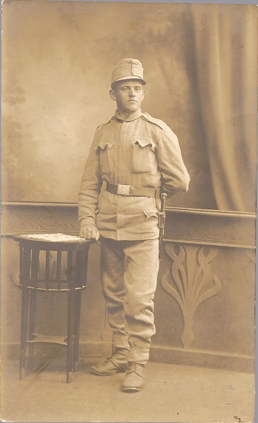 Rakousko-uherský pěšák na ateliérové fotografii ze začátku války