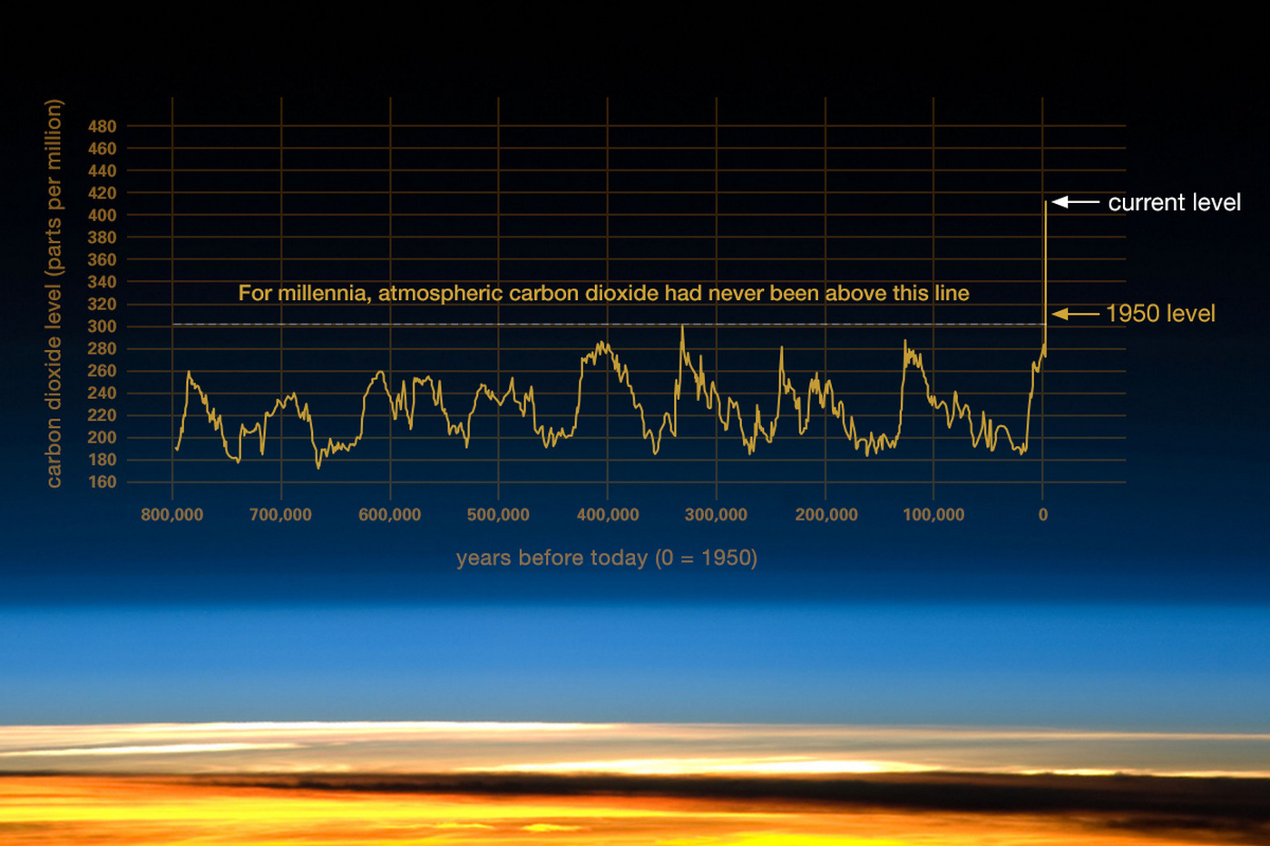 Hladina oxidu uhličitého (CO2) v atmosféře je vyšší než kdykoli v posledních 400 000 letech. Během doby ledové se hladina CO2 pohybovala kolem 200 ppm, během teplejších interglaciálních období to bylo okolo 280 ppm. V roce 2013 překročila hladina CO2 poprvé v zaznamenané historii 400 ppm.