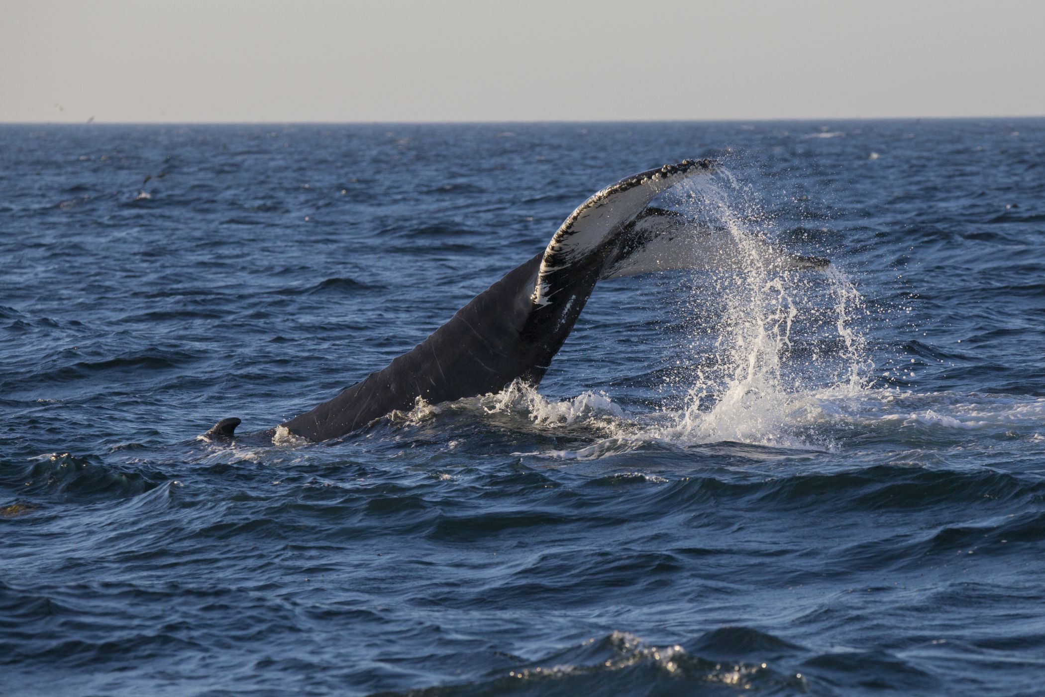 ....na bližší vzdálenosti tloukli o hladinu ocasem nebo hrudními ploutvemi.