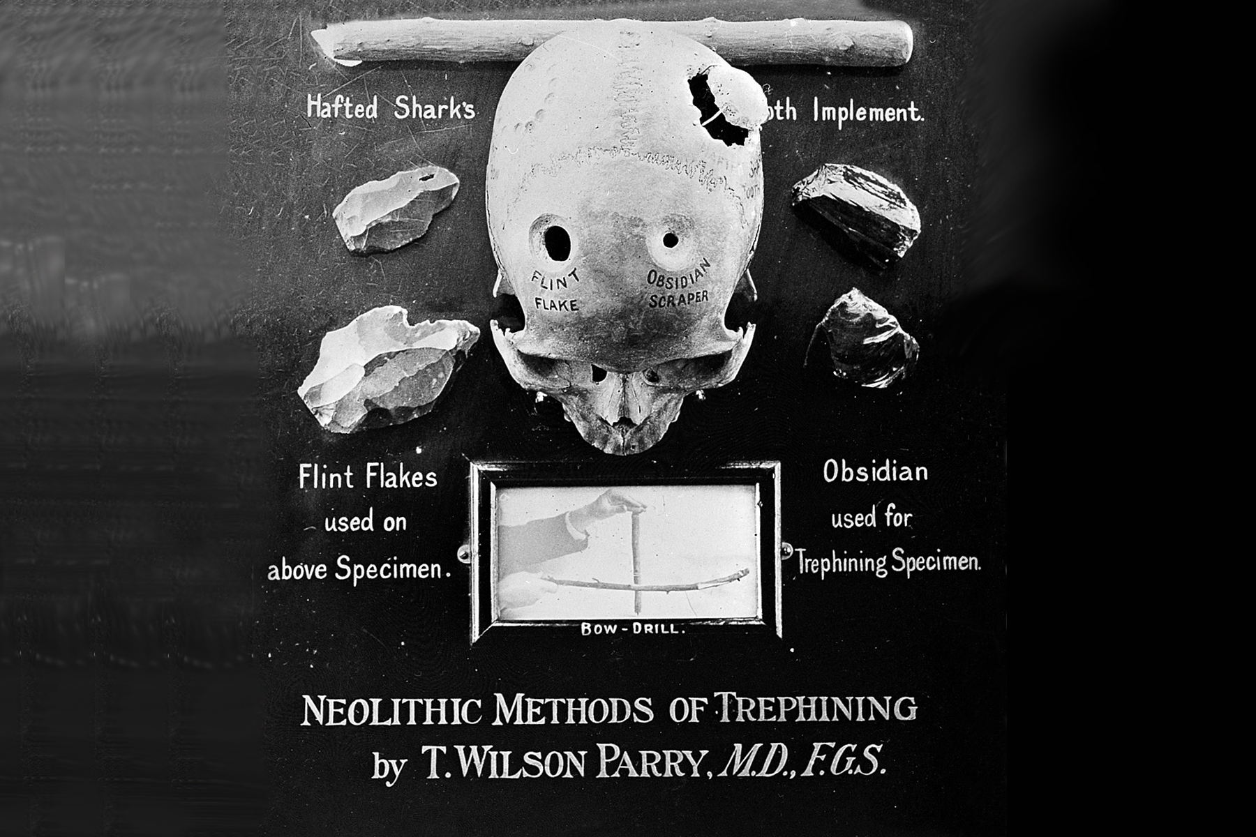 • Thomas Wilson Parry zkoušel na začátku 20. století různé techniky a pomůcky, které mohli neolitičtí léčitelé používat: úlomky pazourku a obsidiánu, luk či žraločí zuby.