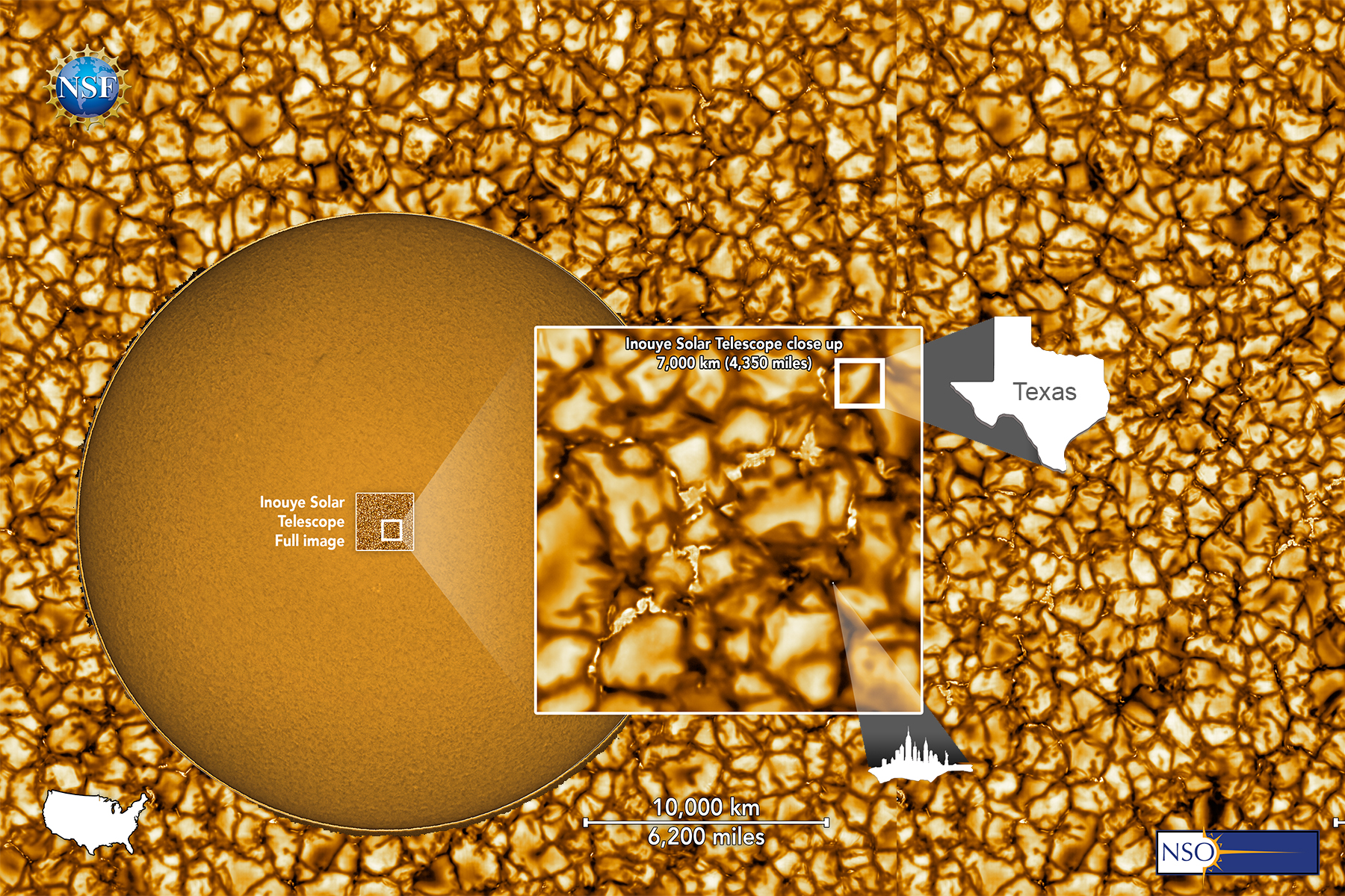 Premiérový snímek teleskopu DKIST. Každá „buňka“, která je na fotografii vidět, je velká asi jako Ukrajina nebo Texas.