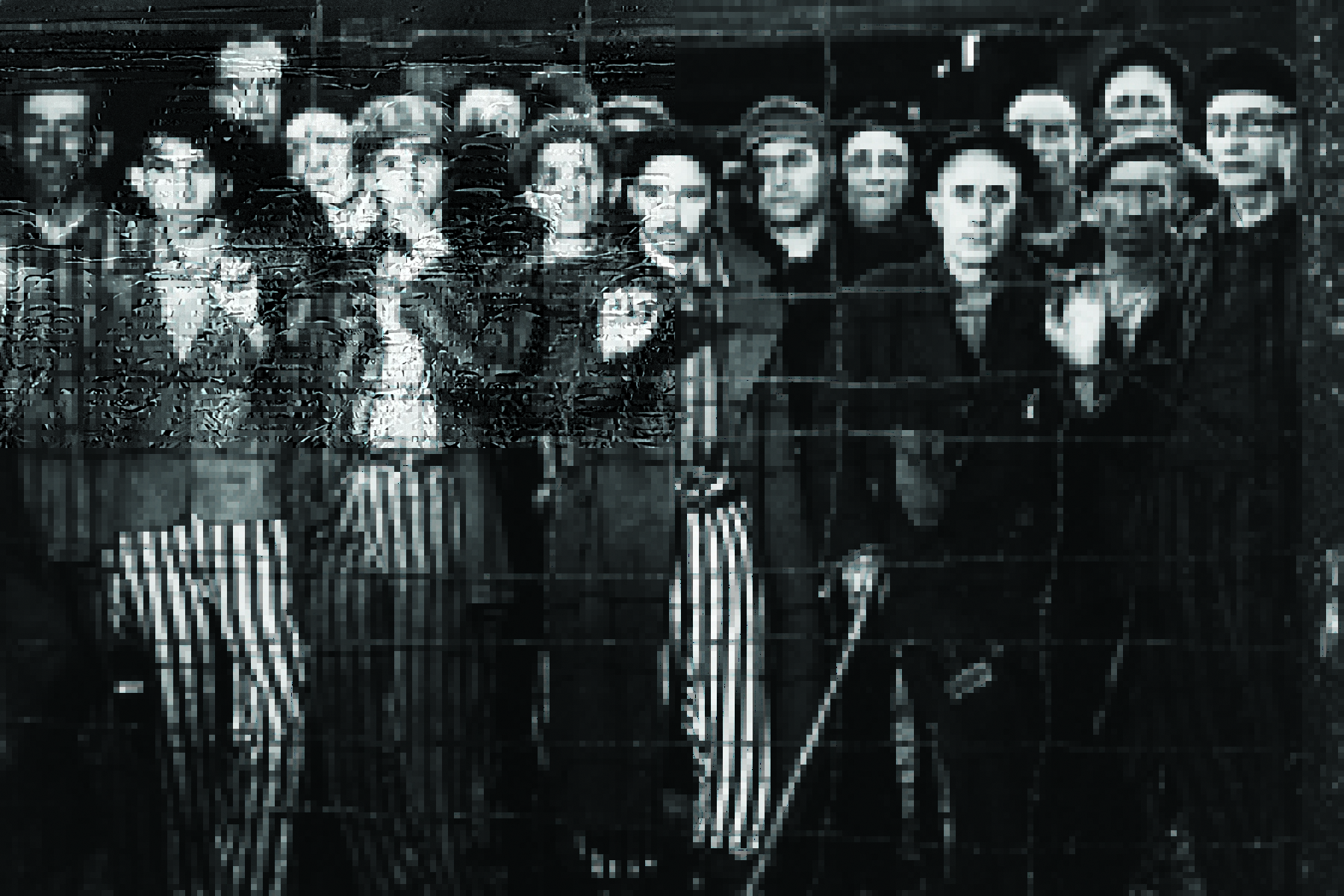 Židé v koncentračním táboře Buchenwald při osvobození Američany v dubnu 1945.