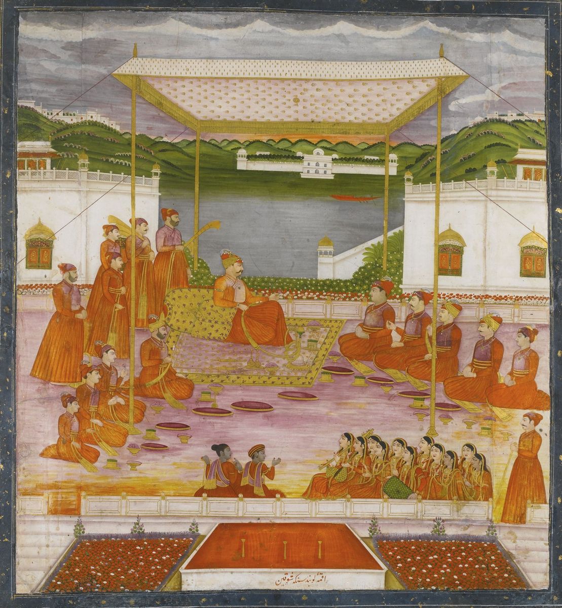• Princ Cyrus v přijímací hale. Stěny zdobí obrázky jeho matky Wilayat.