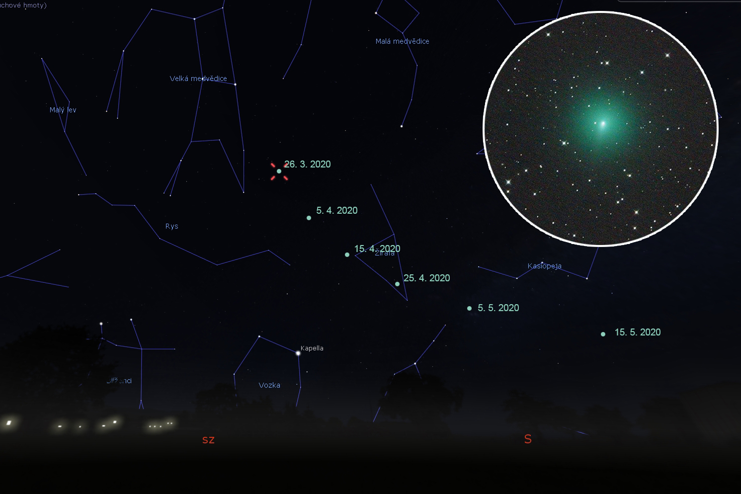 Dráha komety C/2019 Y4 (ATLAS) v březnu až květnu 2020.