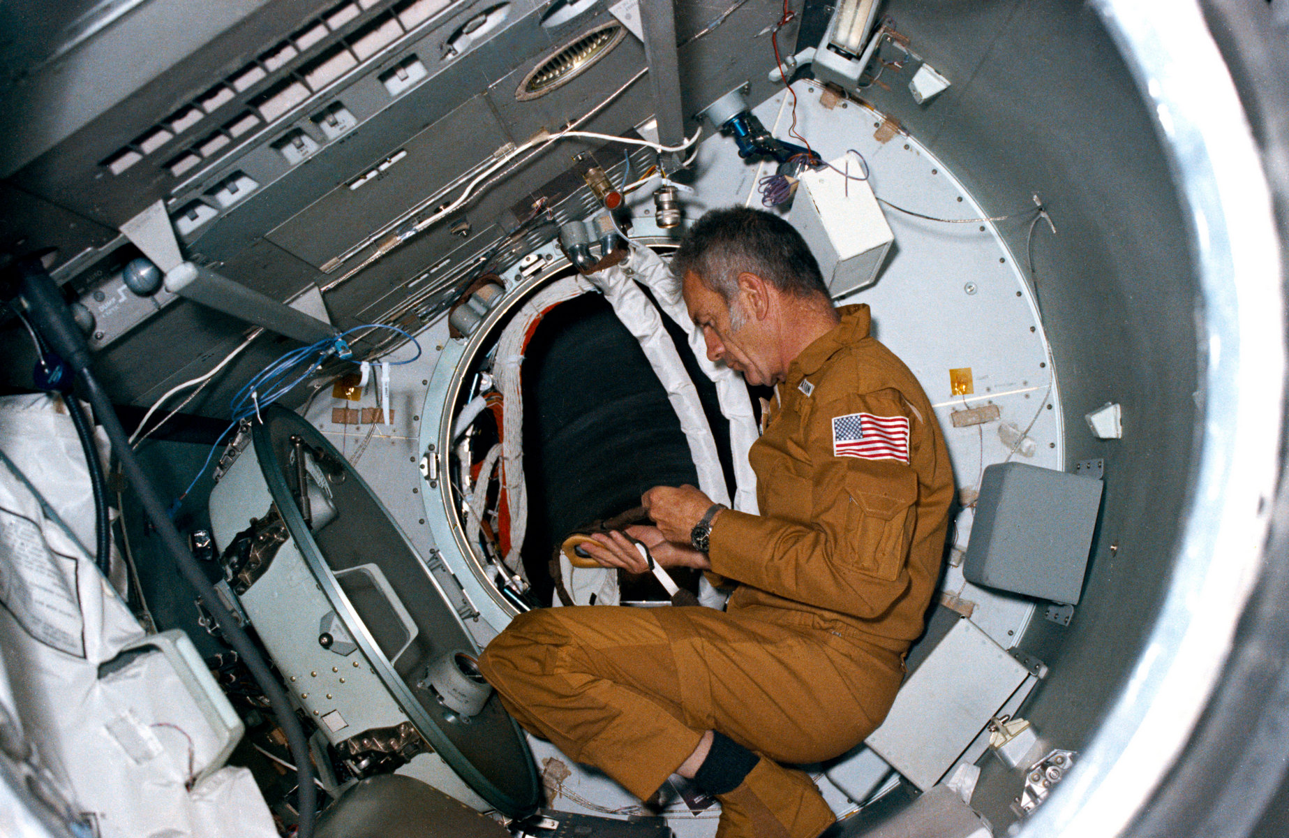 Slayton během výcviku na trenažéru v Houstonu - lékaři mu diagnostikovali vzácnou srdeční vadu. Ani je však nenapadlo ho vyřadit z přípravy ke kosmickým letům.