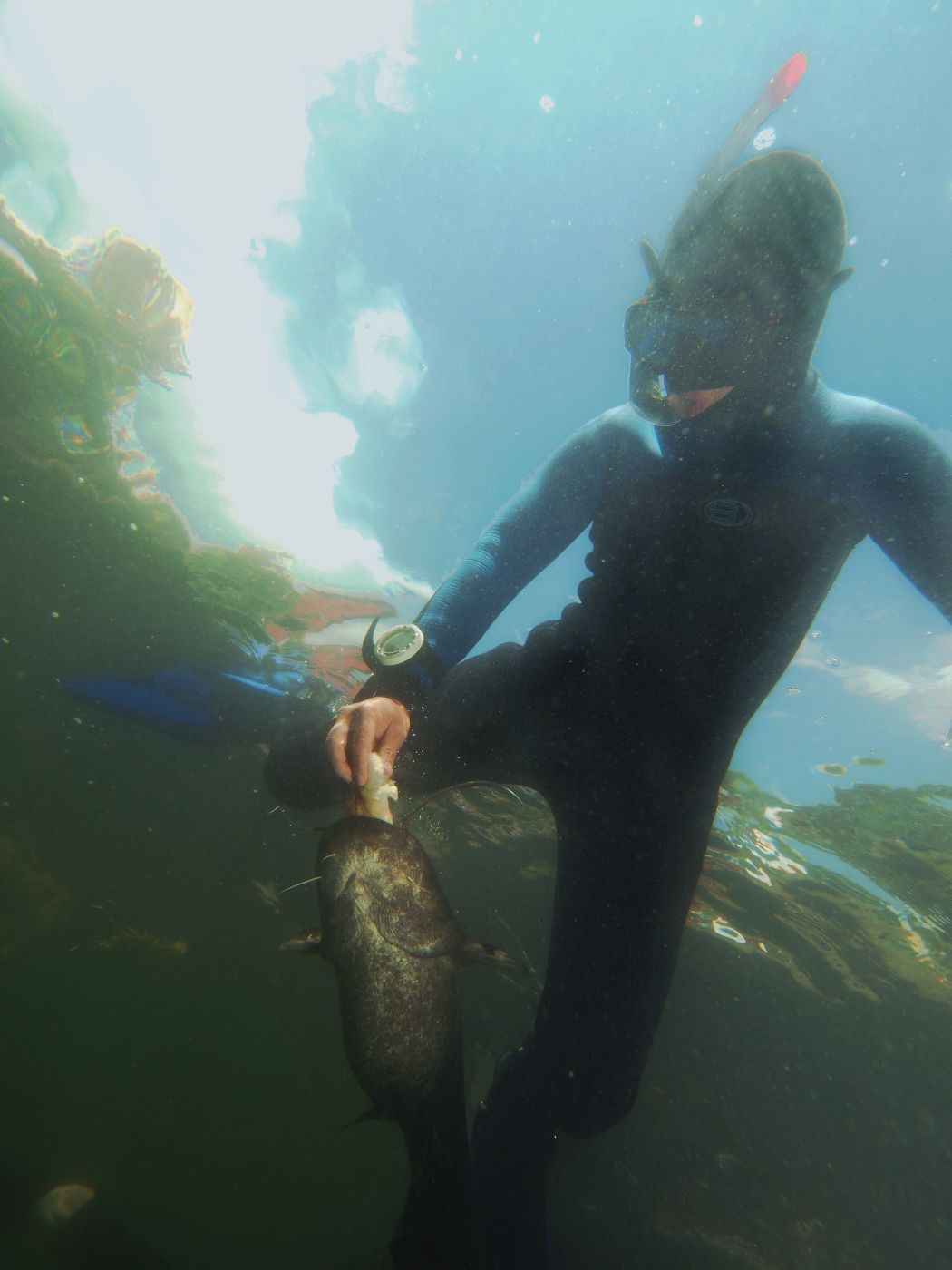 • Když se ponoříte pod vodu s něčím, co sumcům chutná, velmi brzy se k vám přiblíží hned několik velkých tlam.