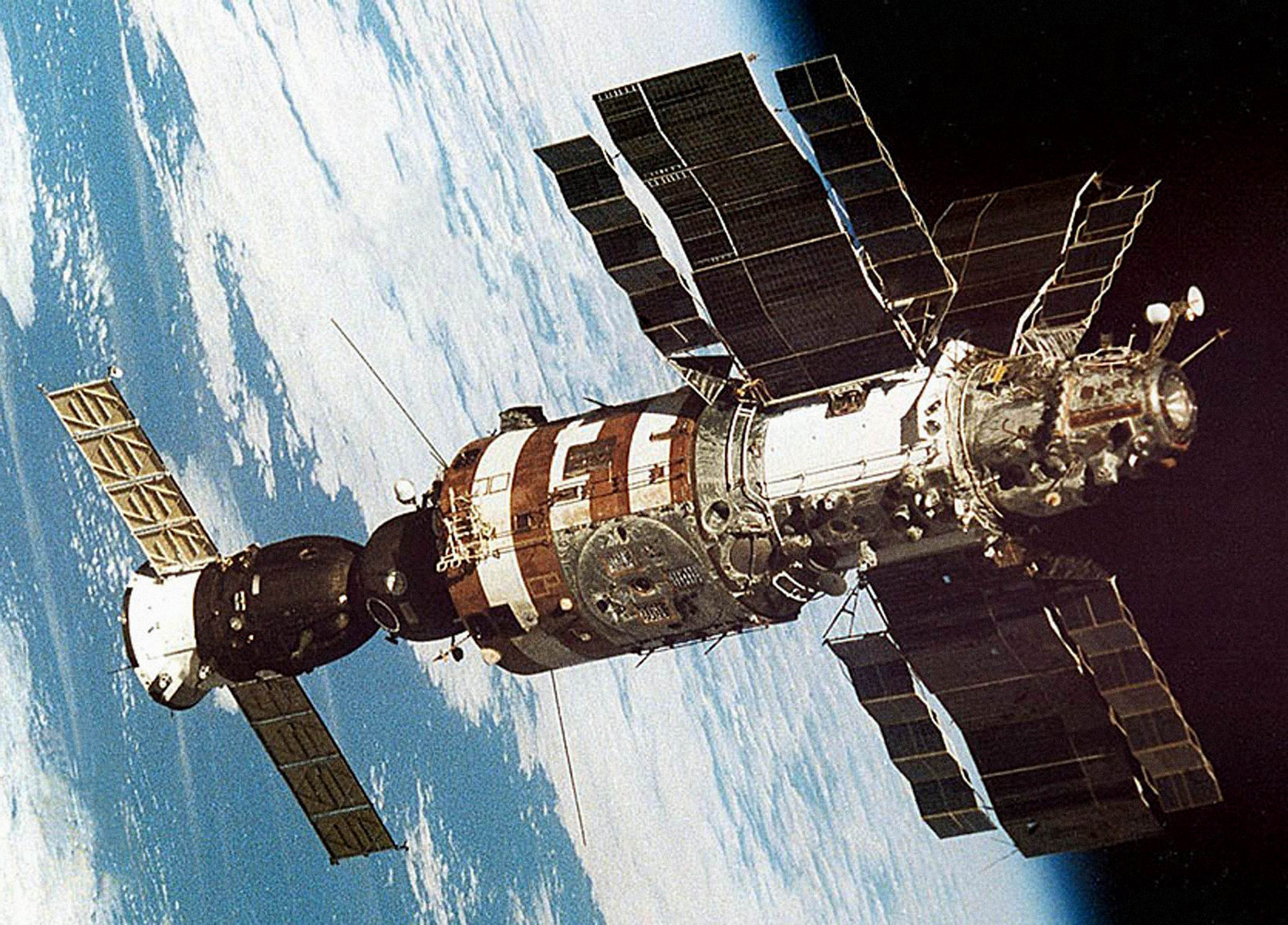 Poslední stanice programu Saljut s pořadovým číslem 7, s připojenou lodí Sojuz.