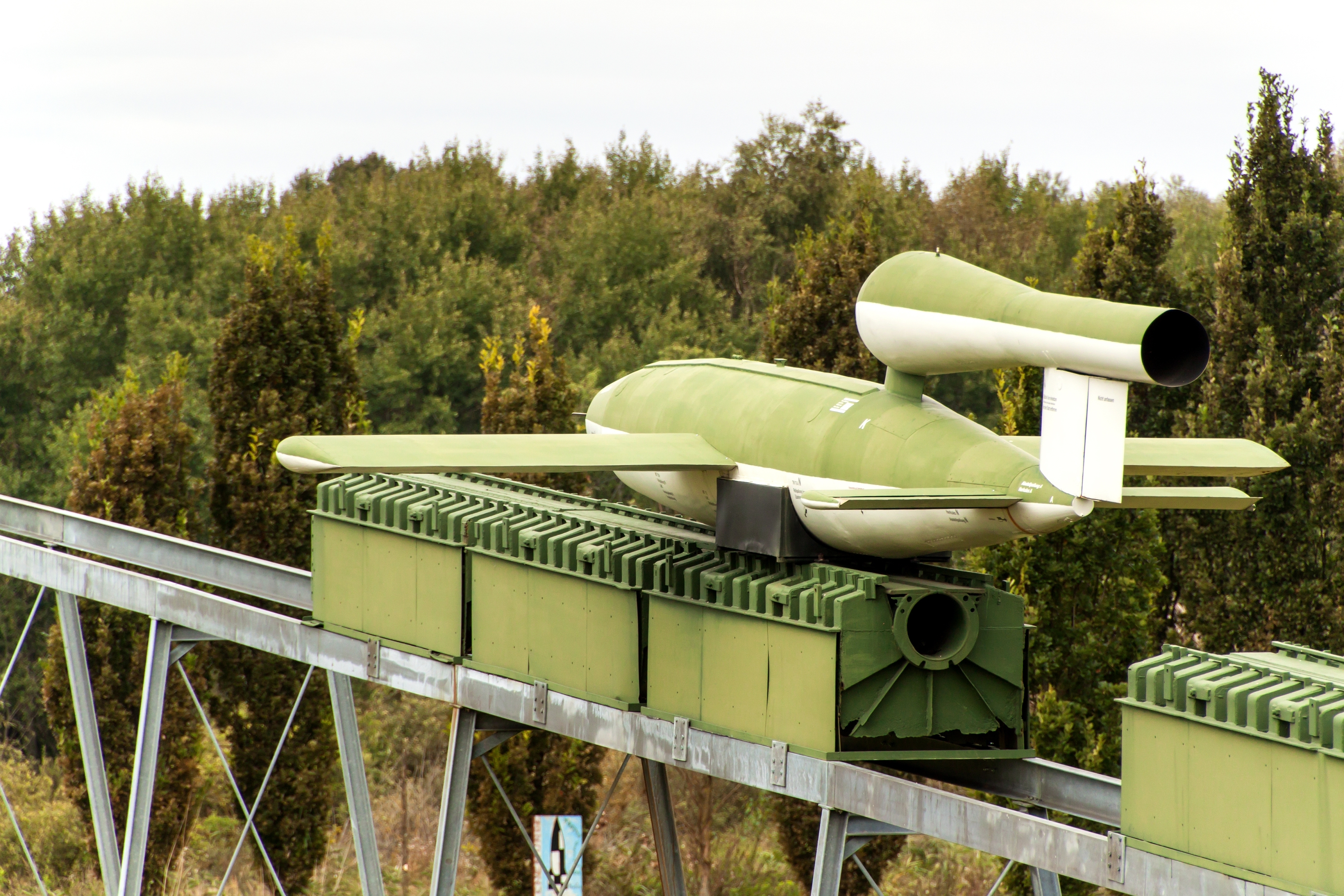 V-1 na segmentu odpalovací rampy, jejíž celková délka dosahovala 42–45 m.