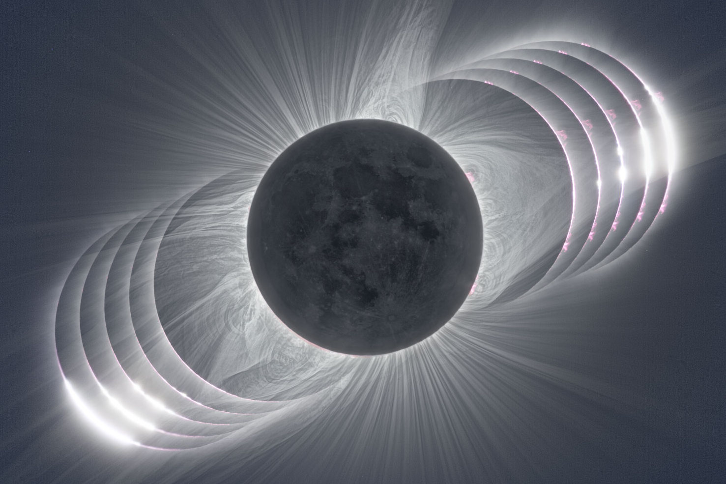• Kombinovaný snímek sluneční korony během úplného zatmění v srpnu 2017.