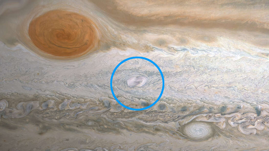 Nově objevená skvrna se nalézá poblíž slavné Velké rudé skvrny Jupiteru.