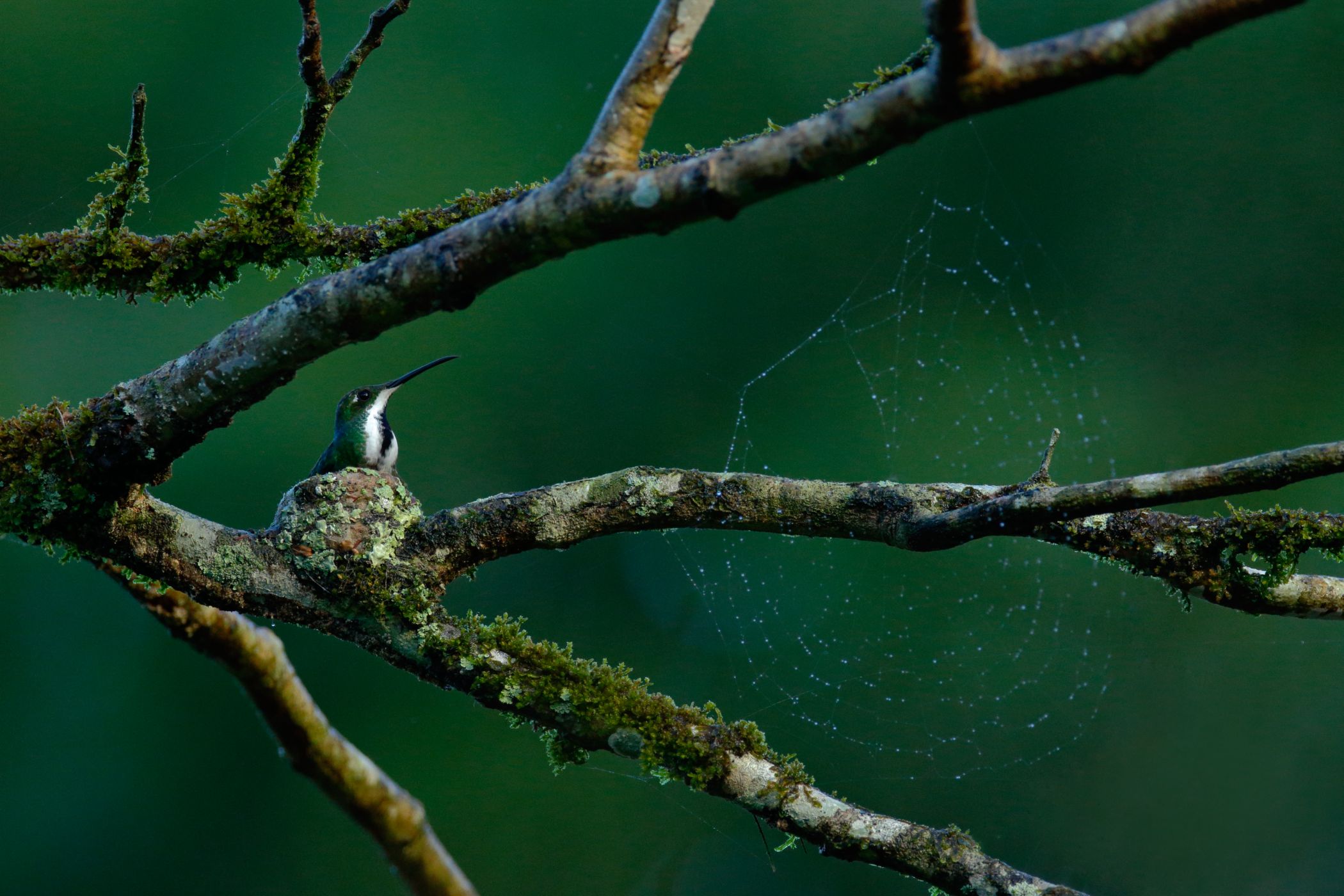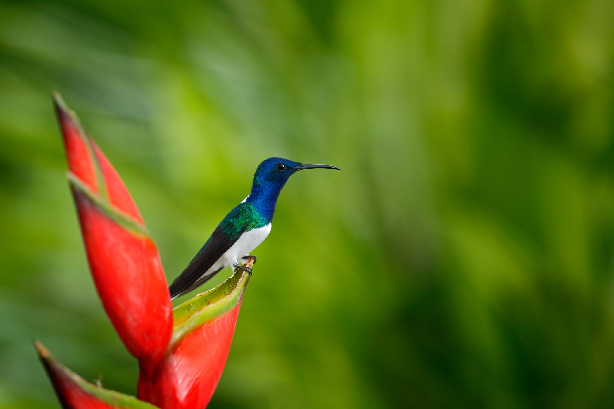 K agresivnějším druhům patří kolibřík bělokrký (Florisuga mellivora).