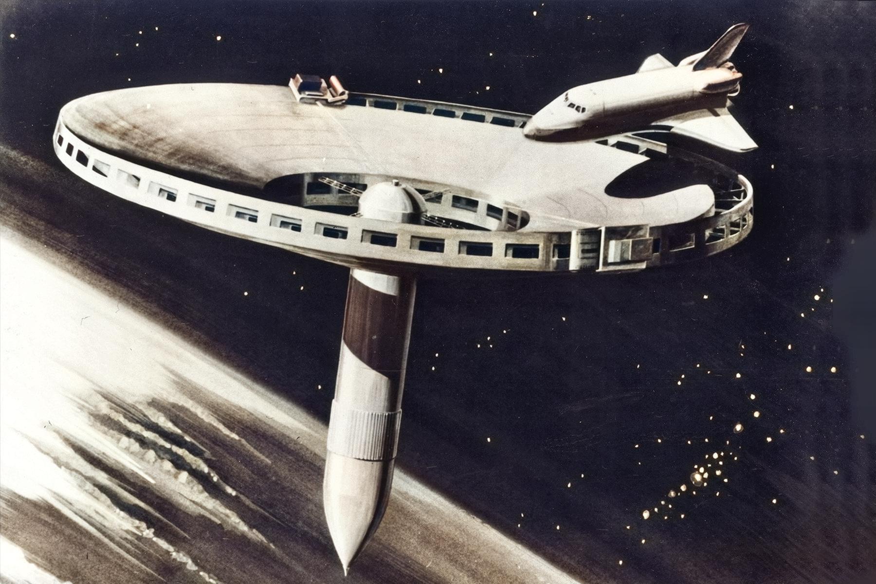 Odvážný design stanice využívající komponenty raketoplánů. Podobný koncept později navrhla i společnost Hughes Aircraft Company.