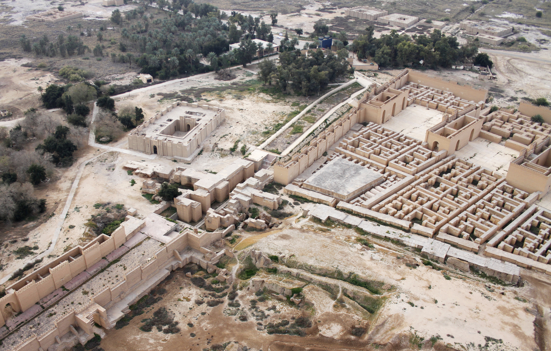 Celkový pohled na pozůstatky Babylonu. Stojící budovy představují moderní rekonstrukci, z původního sídla nezbylo téměř nic. (foto: Shutterstock)