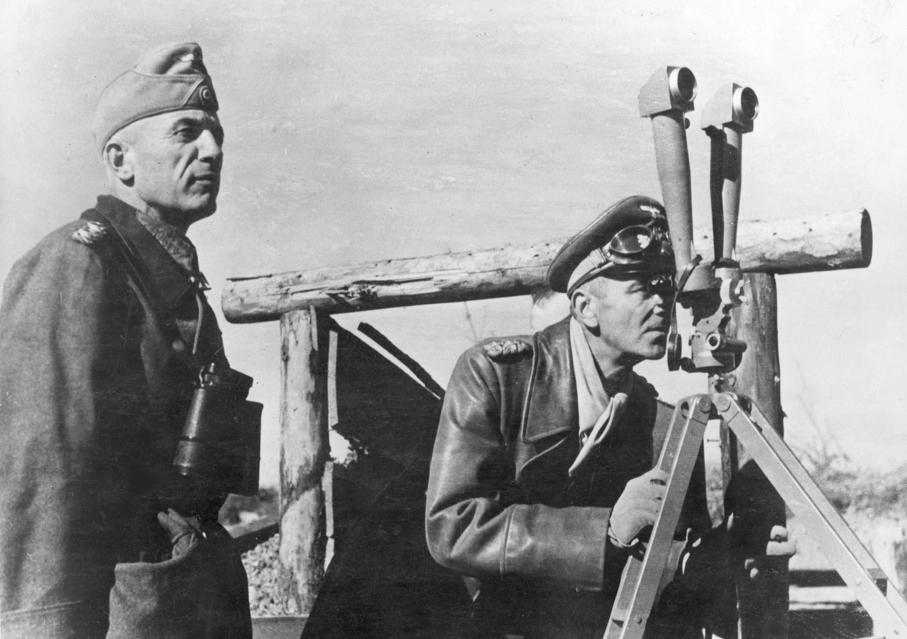Hermann Hoth (vlevo) pozoruje sovětské pozice společně s generálem Paulusem u Stalingradu.