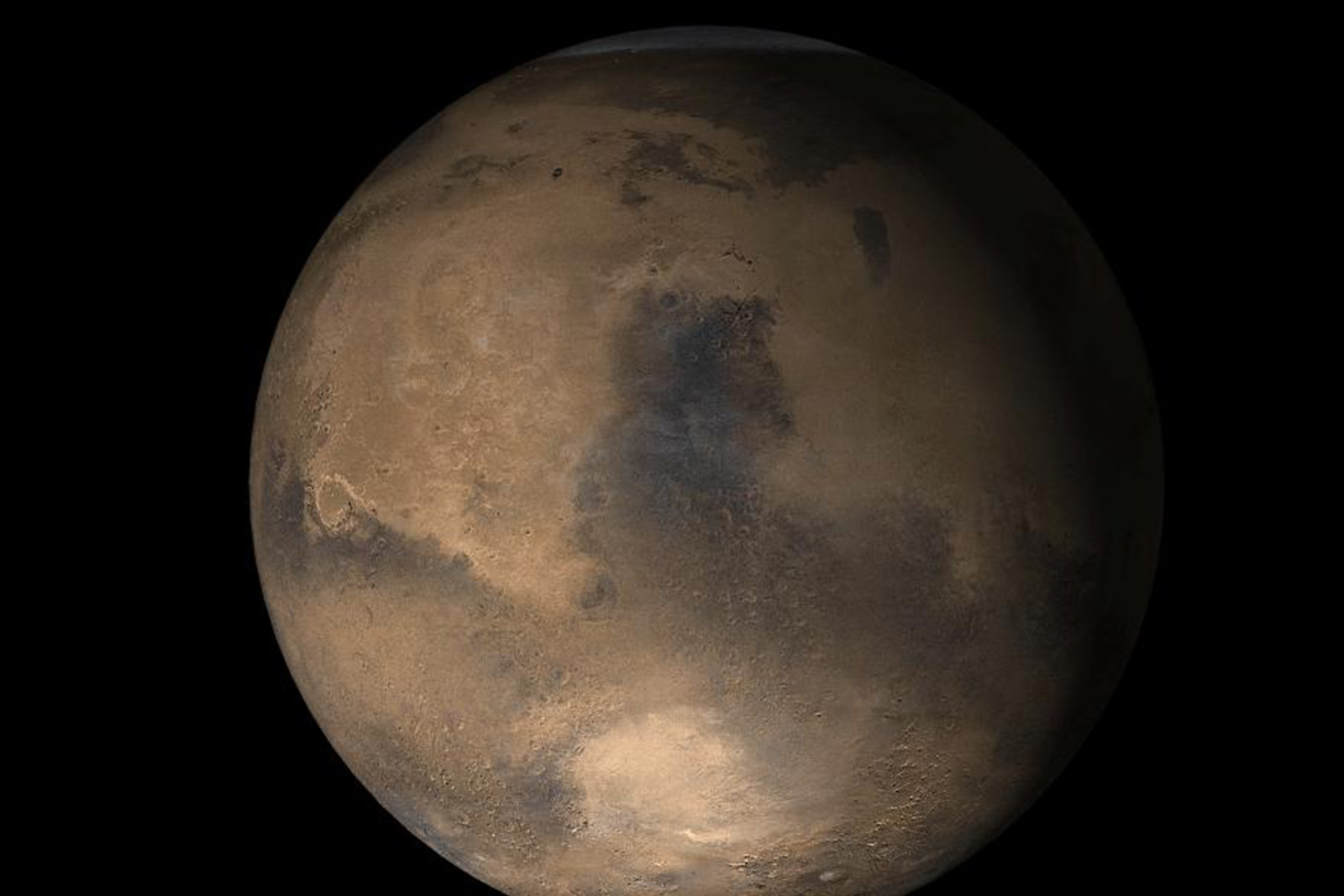 Syrtis Major připomíná svým klínovitým tvarem černý kontinent vzhůru nohama.