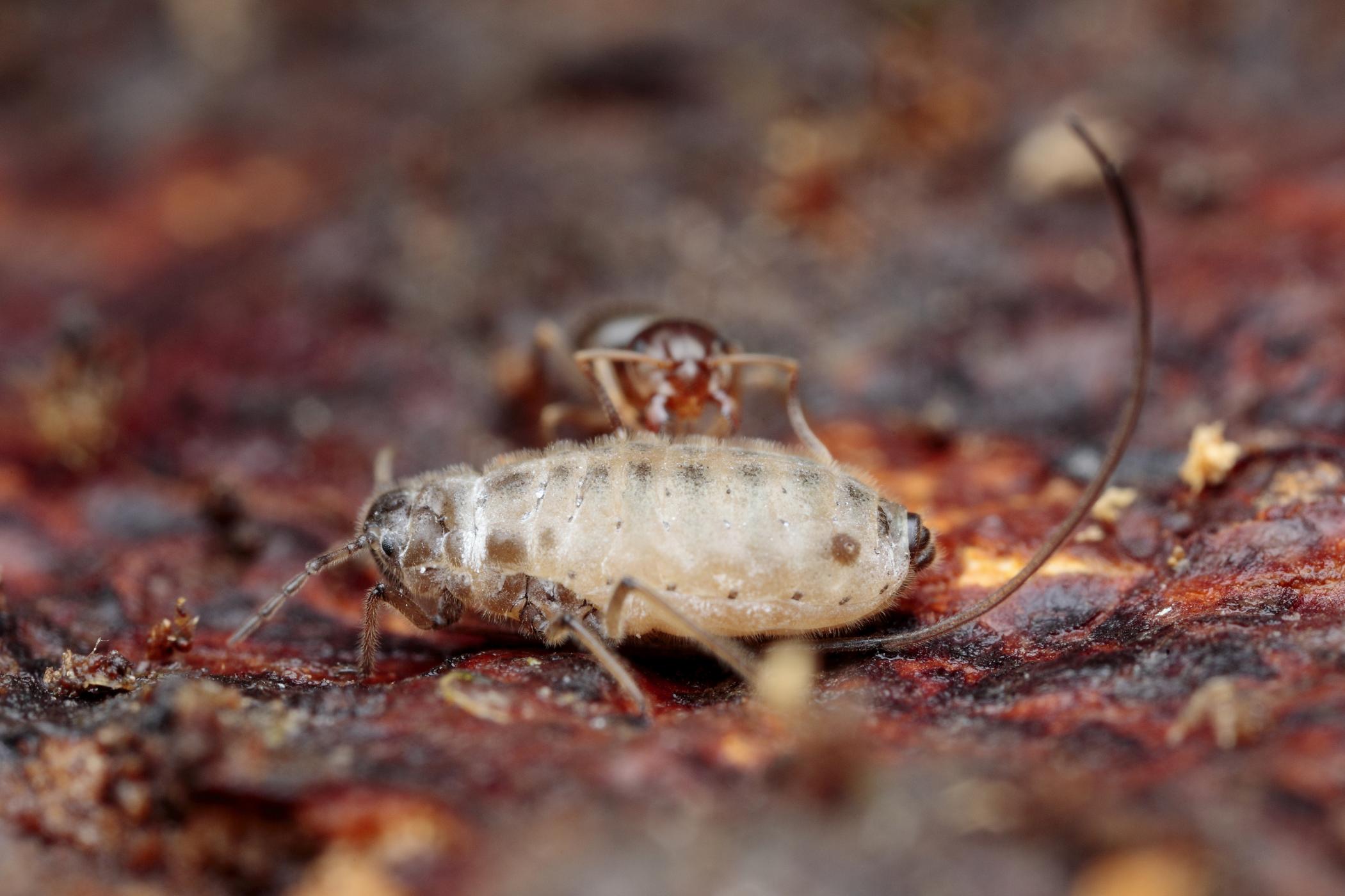 Chobot nosálky dubové (Stomaphis quercus) je tak dlouhý, že dvojnásobně přesahuje délku těla této mšice.