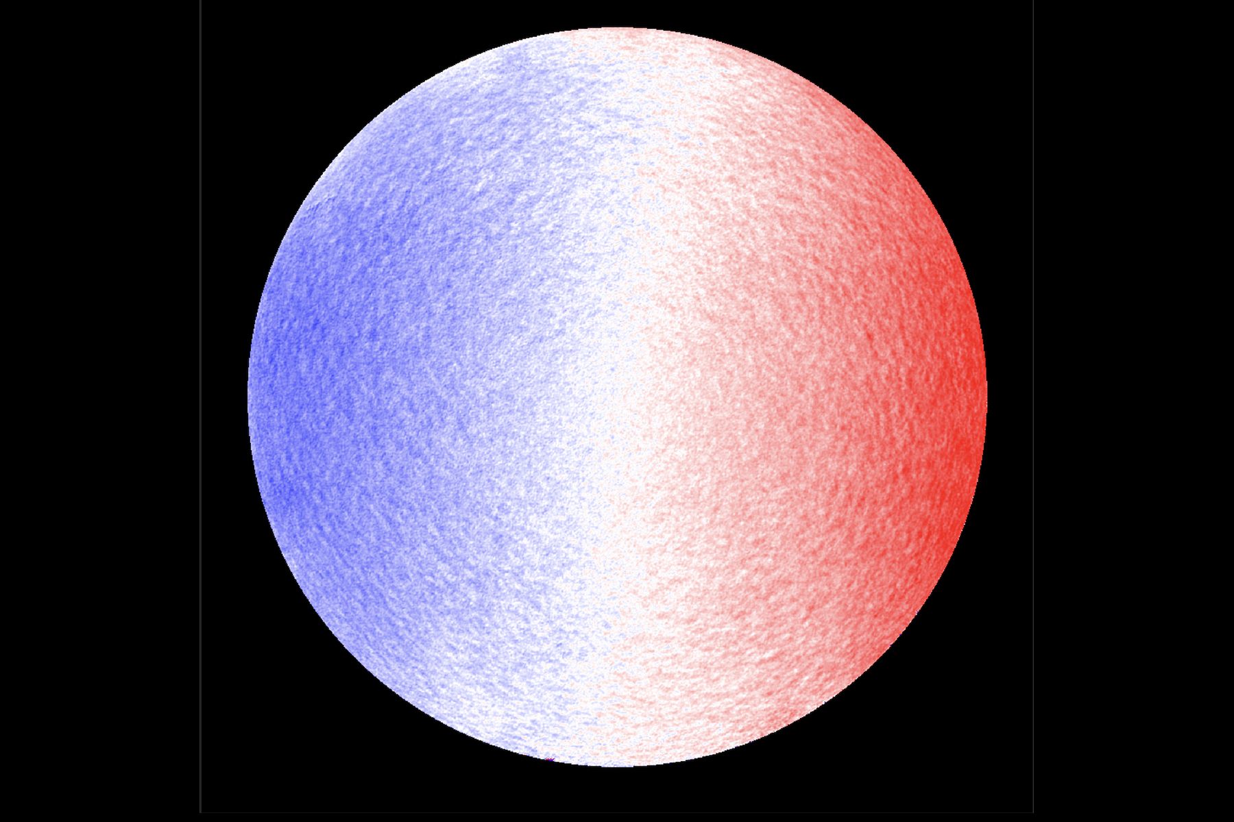 „Tachogram“ Slunce, pořízený přístojem Telescope Polarimetric and Helioseismic Imager (PHI) 18. června 2020.