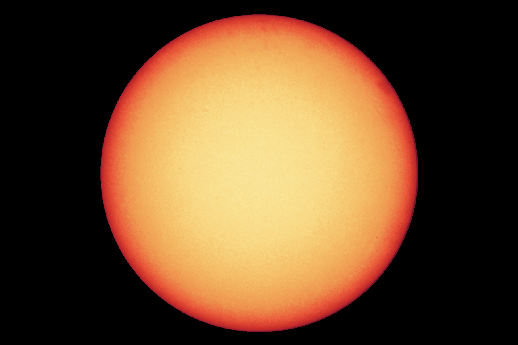 Snímek pořínevý ve viditelném světle. Na povrchu Slunce nejsou patrné žádné sluneční skvrny, protože Slunce v tuto chvíli vykazuje pouze nízkou úroveň magnetické aktivity.
