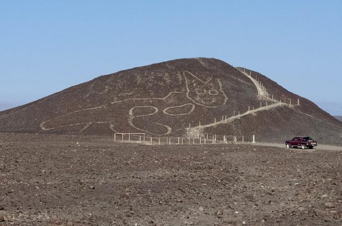 Archeologové na peruánské planině Nazca odkryli obrazec kočky