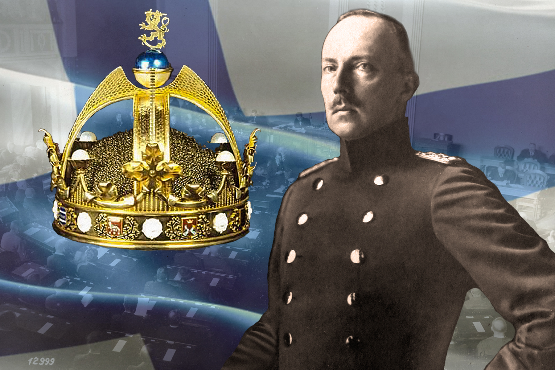 na snímku z roku 1918. Vlevo finská královská koruna.
