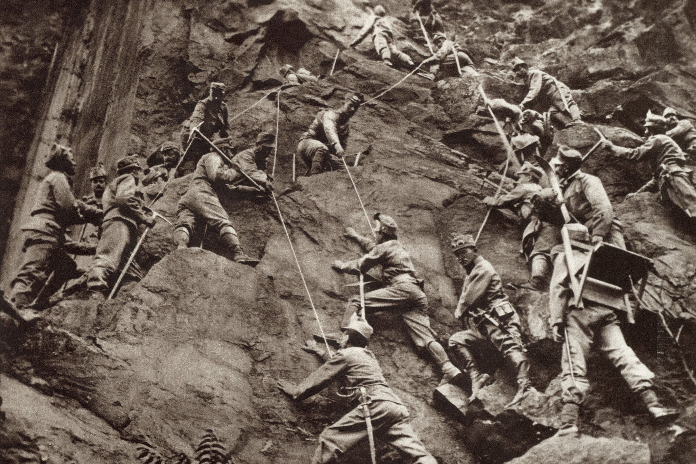 Boj na alpských vrcholcích představoval problém a obě strany tak využívaly „horské jednotky“. Fotografie dokládá, jak obtížný terén museli tito muži zdolávat a v jakém prostředí se odehrával boj s Italy.