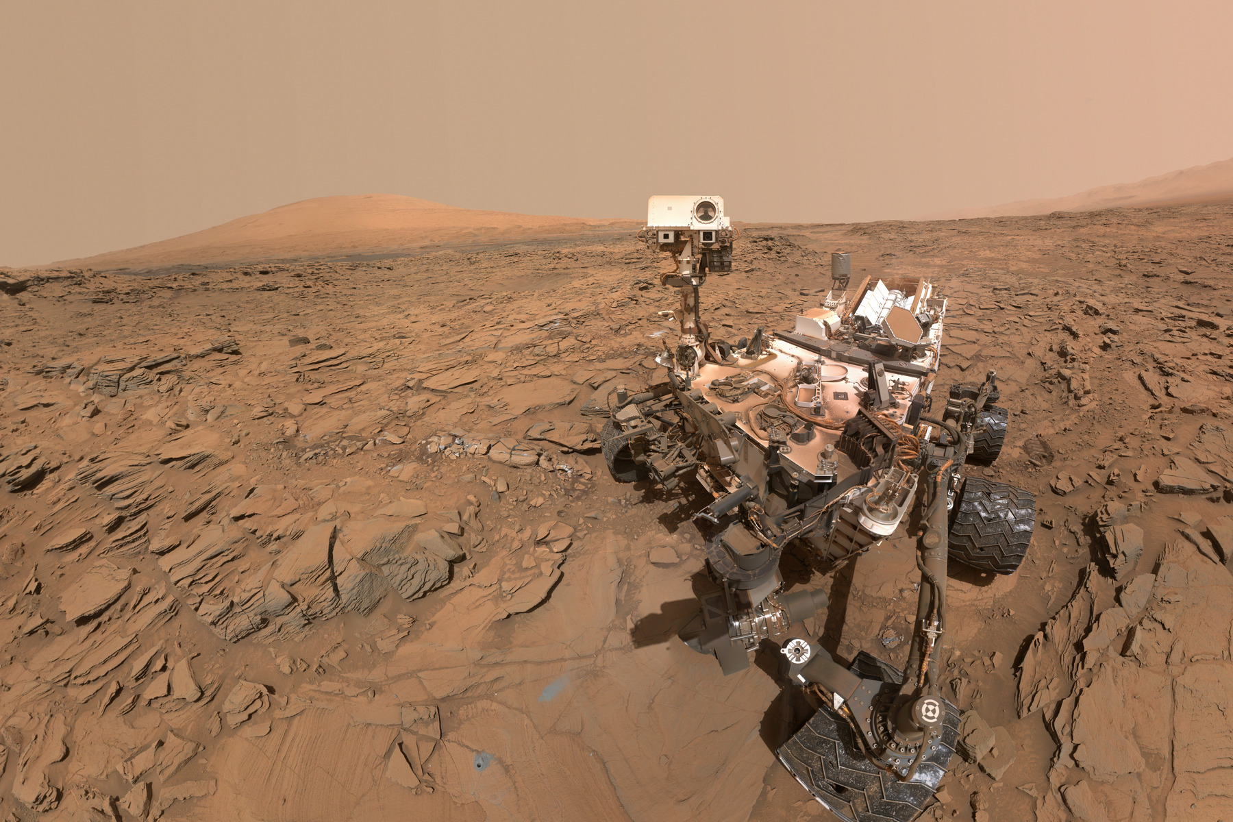 Autoportrét roveru Curiosity na náhorní plošině Naukluft na úpatí Mount Sharp.
